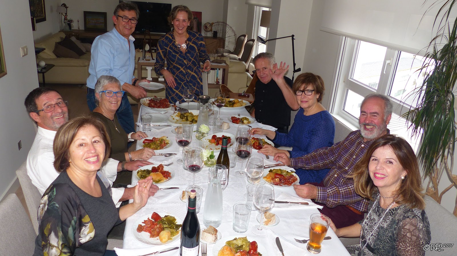 fué la de un grupo de buenos amigos que saben disfrutar del buen yantar y que ya conocian el evento de años anteriores. Paco, Charo, Otilia y Lino, Rafa y Elena se unieron a nosotros para la ocasión. Y como novedad, tanto en el grupo como en la cita gastronómica desconocida para ellos, nos acompañaron Nica y Fernando que también pudieron apreciar las habilidades culinarias de los