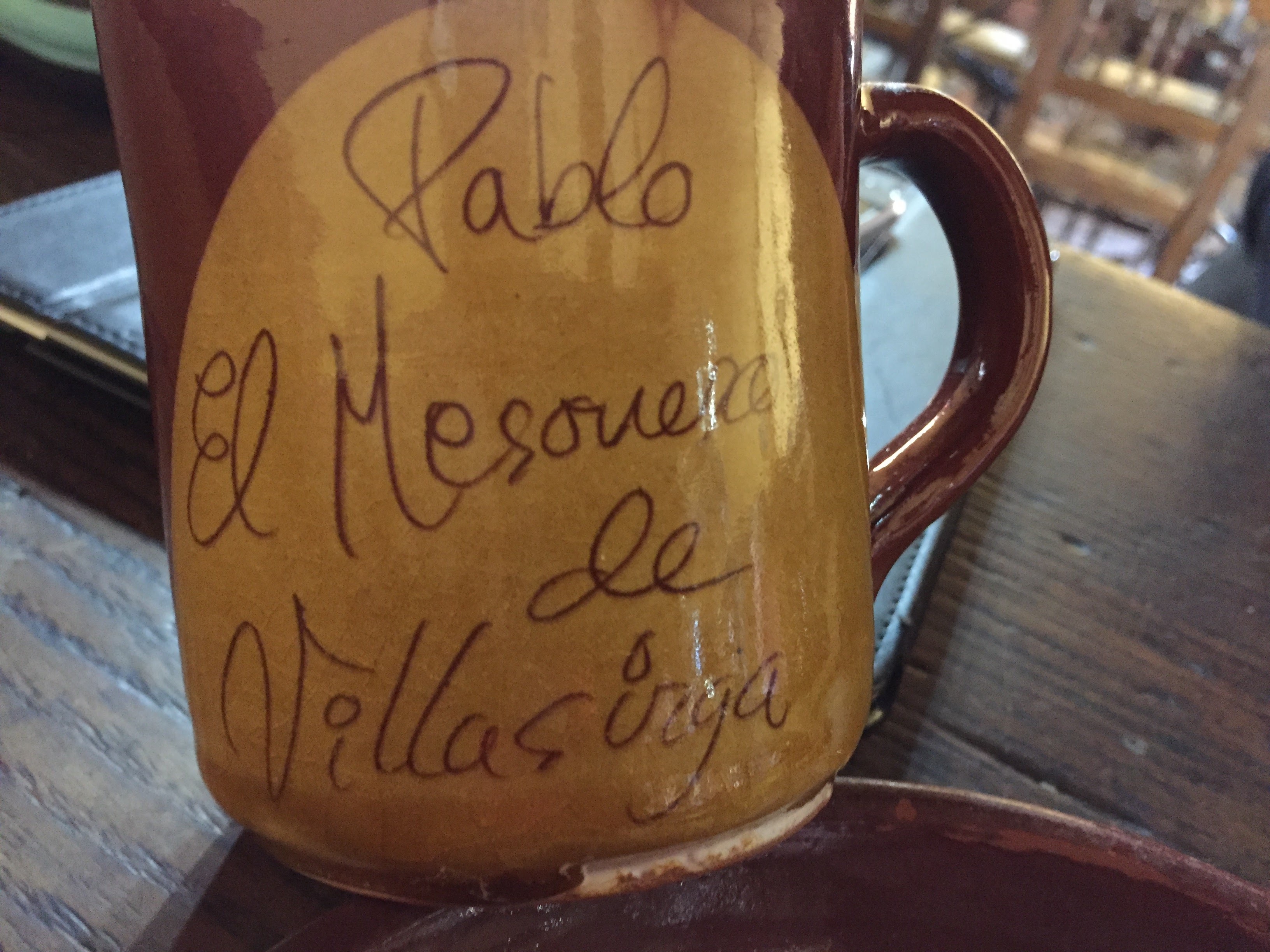 Calculado todo ello, llegamos a Villalcazar a la hora de la comida, sobre las 2 de la tarde. Aquello estaba prácticamente vacío y en el restaurante de Pablo el Mesonero solo había un par de personas comiendo, aunque luego gtras nuestra llegada se incorporó un grupo de otras 6 ó 7 personas. Alli nos sirvieron los productos característicos: Morcilla, Lechazo y de postre Leche Frita, y regado con un vino de la casa. En conjunto, una comida excelente, cumpliendo asi yo mi capricho de rememorar ese lugar, ya que cada vez que he tenido ocasión de viajar por la autovía del Camino de Santiago y pasar cerca de Villasirga me