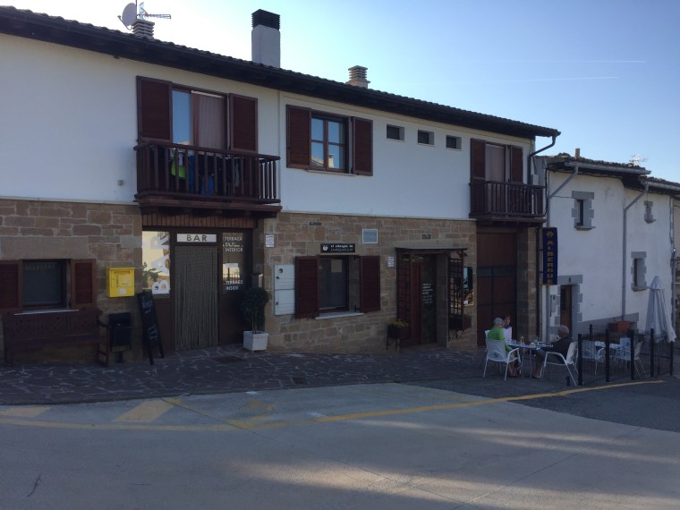 Y finalizada la comida, ruta hasta nuestro destino en Zariquiegui que resultó estar más lejos de lo que decían las guías, y además como está en alto y por la hora el calor apretaba más, se hizo más duro de lo inicialmente previsto. Por cierto que al final hemos venido todos al albergue donde yo había reservado y gracias a ello pude hacer reservas para el resto. Ahora está completo y varios peregrinos que llegaron después han tenido que seguí más adelante.