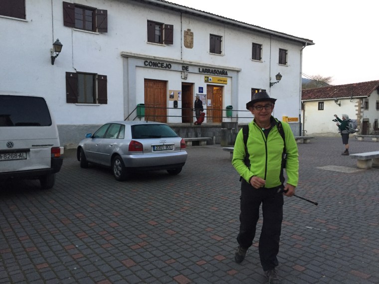 El arranque estaba fijado para las 7,30 en el puente para salir con los franceses y con Truus. Como llegue algo antes, casi me quedo tieso porque el termómetro marcaba 6 grados. Ellos venían con guantes, y como yo no los traje, me compre luego unos en Pamplona. Philipe y yo salimos delante, por ir más rápido que el resto y caminamos hasta La Parada de Zuriain, un bar que está casi 4 km más adelante y allí los esperamos mientras fuimos desayunando.
