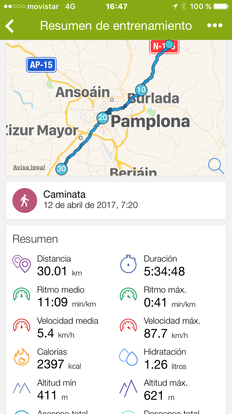 Como resumen de la etapa, decir que hemos recorrido 30 kms, según Endomondo, aunque teóricamente eran entre 27 y 28, pero hay que añadir los flecos y lo que hemos pateado por Pamplona. Y comentar que aunque hoy viaje acompañado, primero por Philippe y desde Pamplona con Truus, la mayor parte del tiempo vamos cada uno a su ritmo, y solo charlamos cuando hacemos alguna mini-parada para beber, quitar ropa o similar. Seguimos con una media de marcha superior a los 5 kms/hora y aún así se lleva bien.