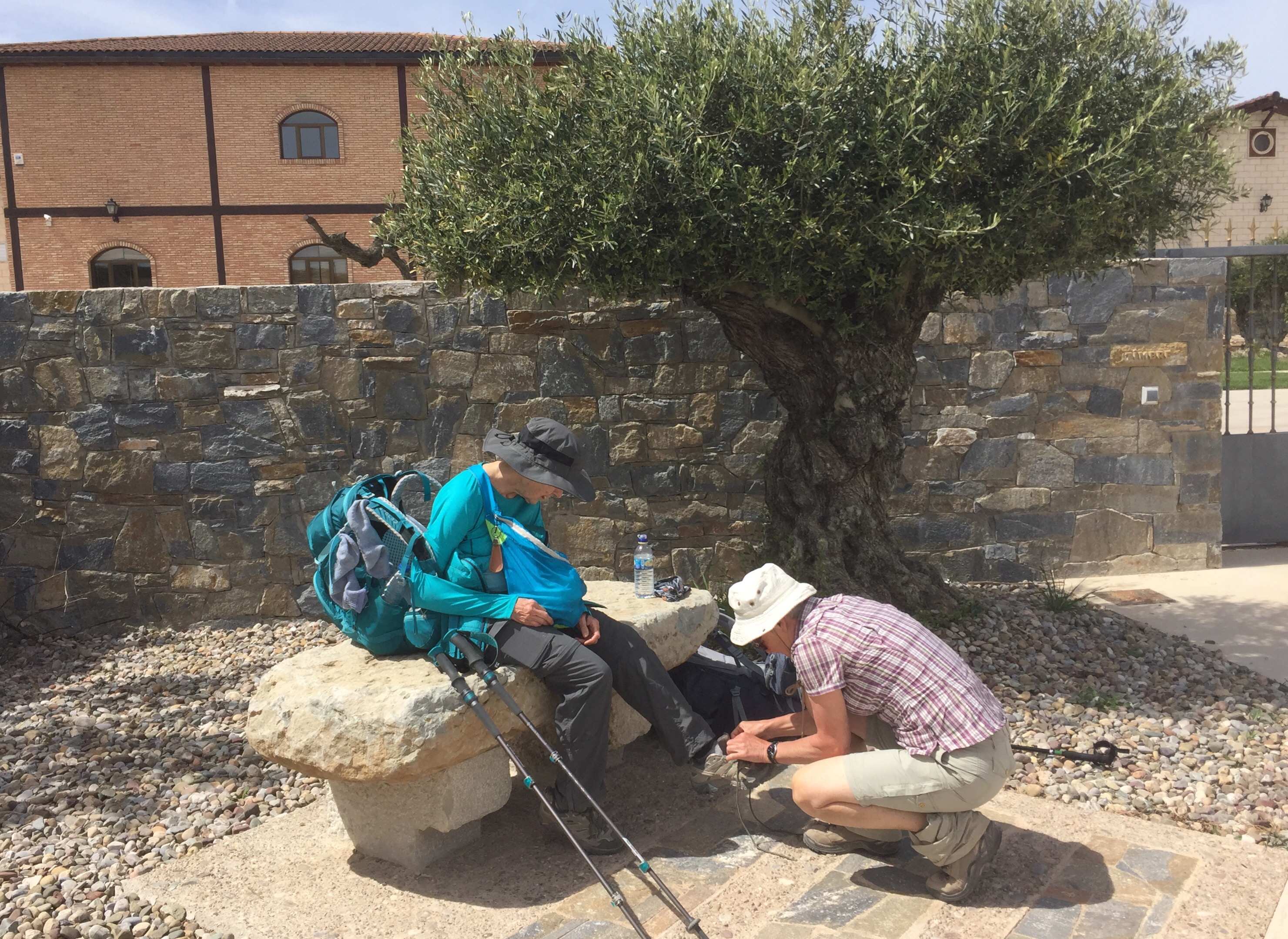 ayudar a una peregrina octogenaria muy menuda que tenía un problema en una bota. Aunque inicialmente me pare y fui a la par un rato, me desmarque pronto ya que iban muy lentas, mientras la buena de la señora (una californiana que vive en New York) le contaba a Truus sus peripecias. No llegamos a saber cuando había empezado la marcha, aunque sí que partió de Saint Jean, y que empieza a caminar cada día poco después de las 5 de la mañana. Va a su aire y se considera un espíritu libre dentro de un cuerpo ya viejo, pero se lo toma todo con una filosofía muy peculiar.