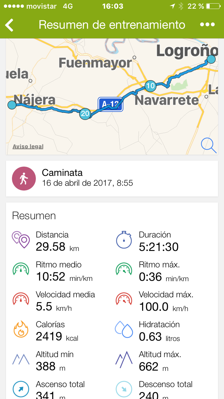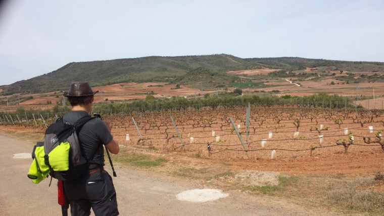 hasta desembocar en una fea zona, tipo polígono que es la que desemboca en Navarrete. Una vez entrados en el pueblo, parada a refrigerarse y meter algo más al estómago tras 11 kms de marcha. Hecho lo cual, atravesamos toda la villa hasta llegar a la iglesia en la zona donde ya habíamos hecho noche, y a partir de ahí está la salida hacia Najera, nuestro final de etapa previsto.
