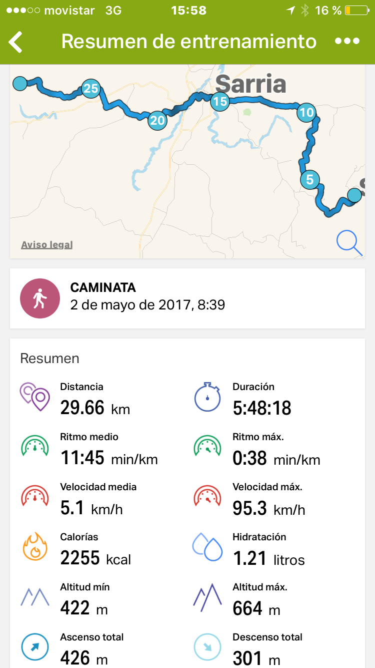 2 de mayo. Esta claro que el refrán de que a quien madruga Dios le ayuda funciona, porque yo hoy hice lo contrario y me pasó factura la etapa. La verdad es que como había calculado que hoy eran menos kms y en mi albergue no abrían la cafetería hasta las 8, me decidí a esperar para salir después de haber desayunado. Y así lo hice, con lo cual cuando me puse a caminar eran más de las ocho y media, las 8,39 según la app de Endomondo.