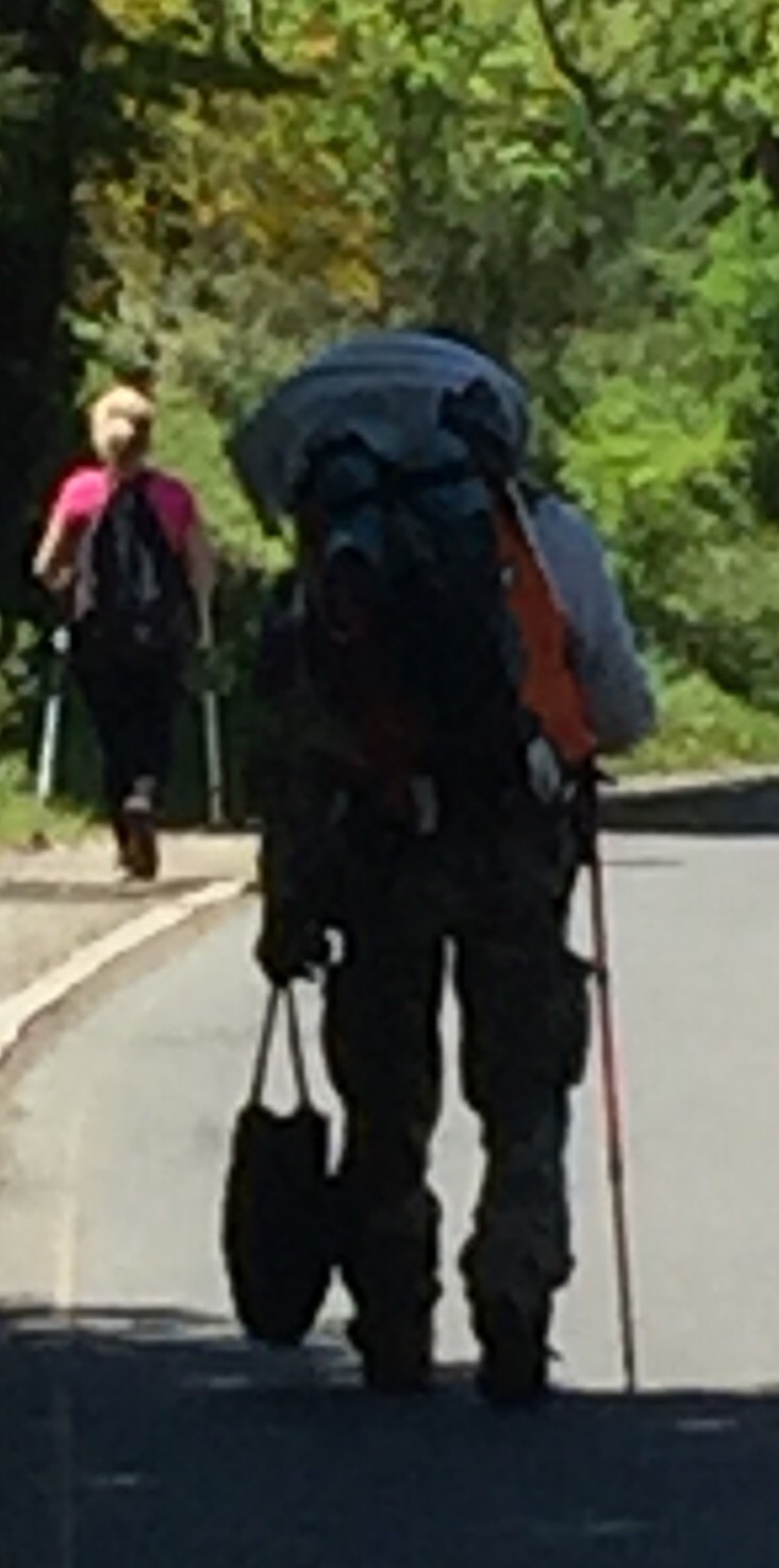 En ese tramo me encontré con un asiático que caminaba delante de mí y llevaba tantas cosas encima que más qué peregrinando parecía que hubiera hecho la mudanza de casa y llevará todo encima.