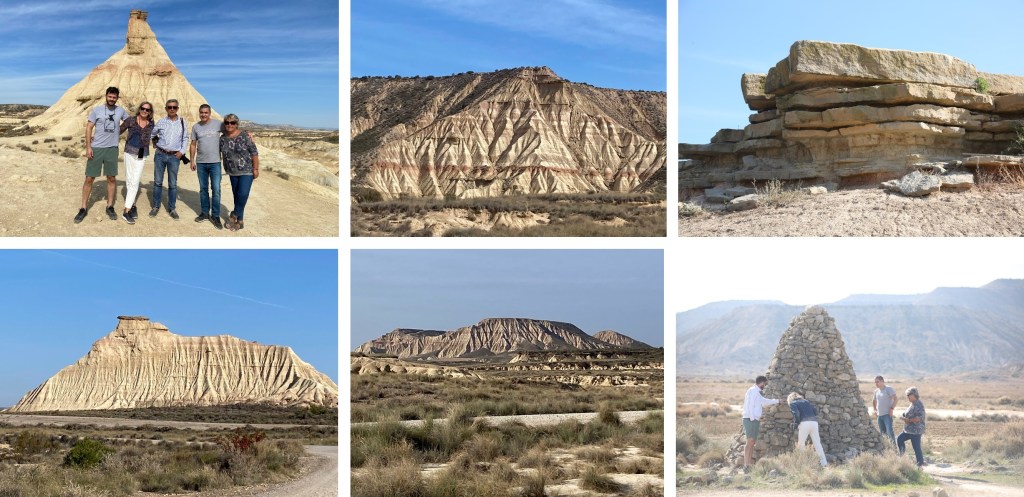 Para el sábado teníamos ya prevista la visita con nuestros amigos a las Bardenas Reales, un paraje que parece mas propio de otro planeta y en el cual, de hecho, se han rodado varias películas y series televisivas aprovechando las peculiaridades del terreno. Es una zona protegida, en una parte de la que está ubicado un polígono de tiro utilizado por las FF.AA. españolas y también ahora por la OTAN. No es de libre acceso, sino que solamente está permitido circular por unas rutas determinadas. El recorrido que nos recomendaban y permitían en el Centro de Información es un circuito cerrado de aproximadamente 34 kms. en los cuales se van haciendo paradas intermitentes para observar aquellos puntos más llamativos. Desde luego es un paisaje idóneo para disparar continuamente la cámara fotográfica y por tal motivo tanto con la cámara del iPhone como desde mi CANON 5D Mark III no me cansé de disparar una y otra vez.