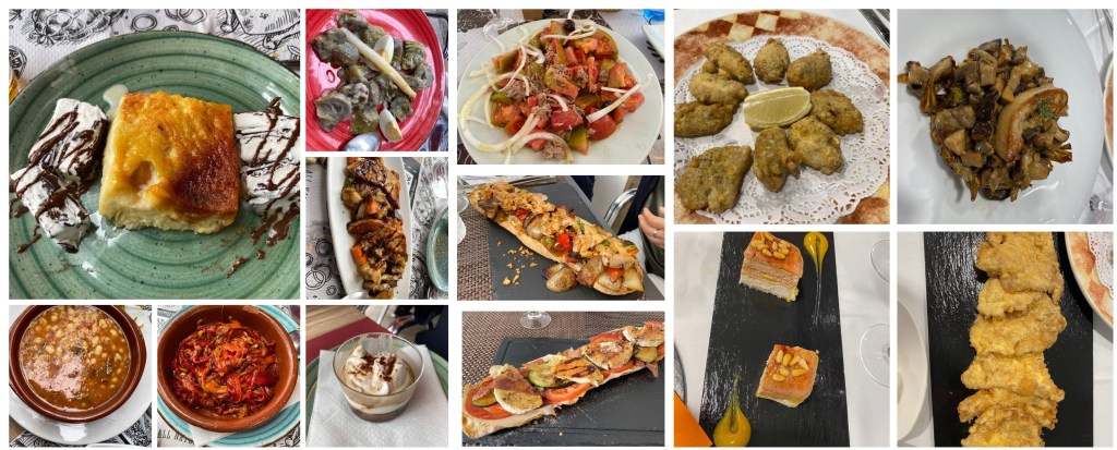 Ya de regreso en Tudela, buscamos un lugar donde cenar, para seguir degustando productos navarros. Y como quiera que los lunes cierran muchos de los restaurantes, terminamos aterrizando en lugar seguro. Es decir, regresamos al Remigio, donde ya habíamos estado la primera noche. Y fue un acierto, porque estaba todo igual de bueno que la primera vez. Unas Cebollicas confitadas, Pimientos de Cristal y Pochas. Y unos buñuelos para dejar la boca dulce antes de ir a dormir.