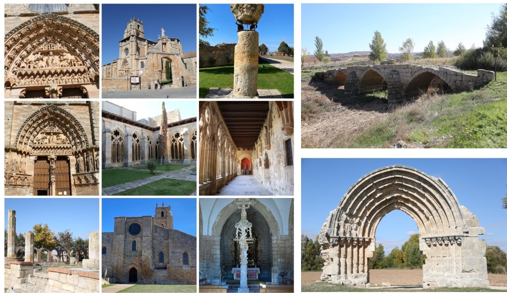A la mañana siguiente abandonamos el hotel camino de casa, pero haciendo unas paradas por el camino, ya que habíamos previsto parar a visitar los restos romanos de La Olmeda, cerca de Sahagún. Y como quiera que a la ida nos acordamos de los ricos quesos que en otras ocasiones compramos en Sasamón, habíamos acordado también hacer allí una parada intermedia para traer una variedad de ellos. Nuestra sorpresa fue que al acercarnos Ipi, que se informa con detalle de cada visita, descubrió que alli había una iglesia de la que se hablaba muy bien, con lo cual fuimos a verla. Y nuestra sorpresa resultó mayúscula cuando nos encontramos una gran edificación, con un impresionante claustro y todo muy monumental, además de enterarnos de que Sasamón era en tiempos romanos un enclave importante, desde el que se lanzaban los ataques a los territorios cántabros, quedando algunos vestigios de aquella época. Además de la gran iglesia de Santa María de Los Reyes, descubrimos otros restos como un puente romano, un arco que es lo que queda de una antigua iglesia, los restos de una muralla y una ermita que guarda el Humilladero, una columna ante la cual se arrodillaban los peregrinos a su paso por la localidad en siglos pasados. Total, un descubrimiento increíble para nosotros del que nunca habíamos oído nada.