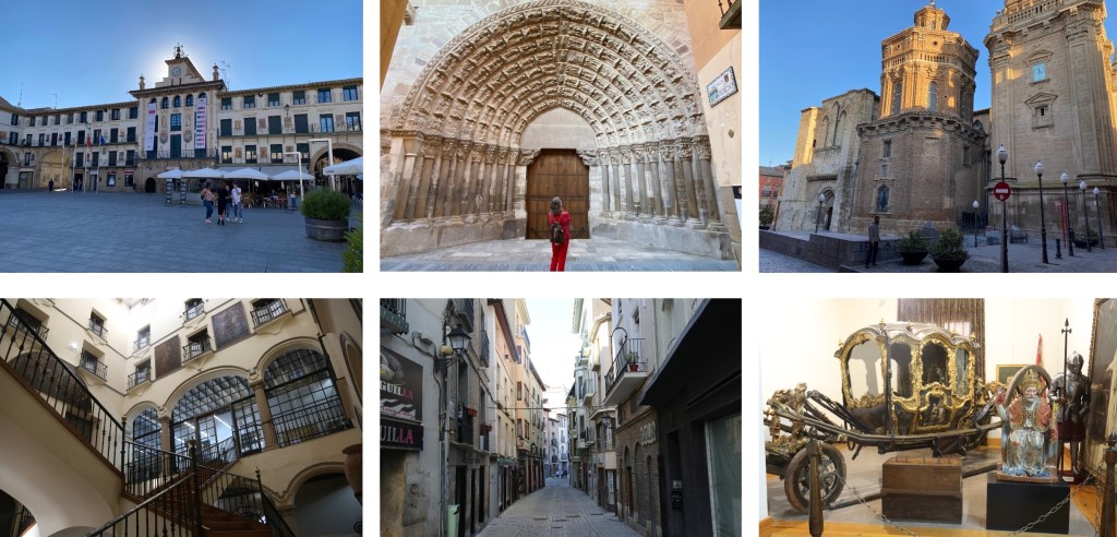 Y después de comer, para aprovechar la tarde, nos dirigimos a Tarazona, una localidad próxima a Tudela, pero que pertenece a Zaragoza, de la que nuestros amigos nos habían hablado muy bien. Y resultó que tenían razón, porque nos encontramos con una catedral impresionante, aunque no pudimos acceder a ella. Una plaza de toros octogonal, ahora utilizada como viviendas, y un barrio judío muy bien conservado, en el que destacan las llamadas «casas colgadas». También el edificio del ayuntamiento es francamente interesante. En fin, una visita bien aprovechada.