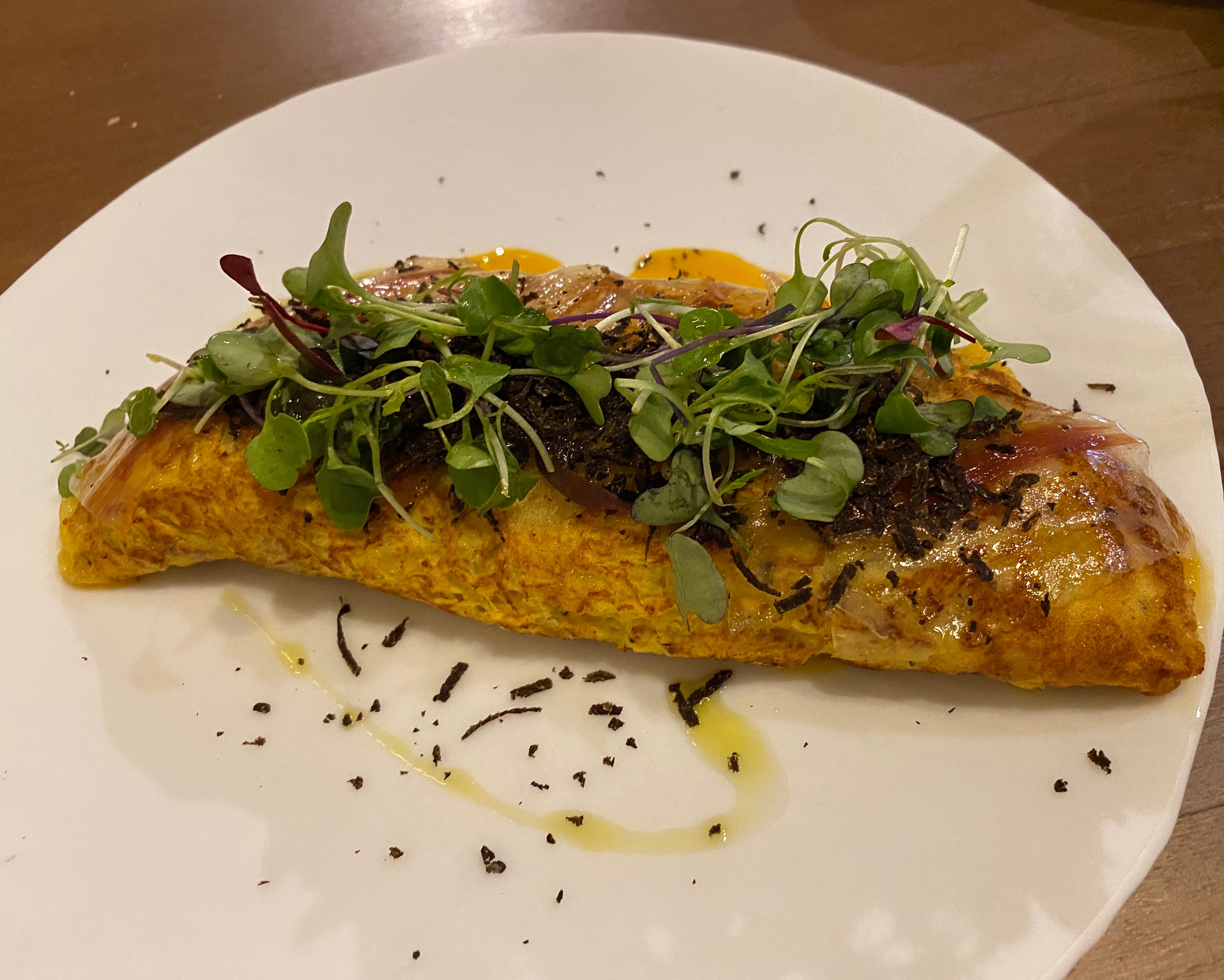 Ya llegados a Sobrado, era el momento ideal para comer algo y como la temperatura en el exterior no era especialmente alta, nos apuntamos a un menú en el que de primer plato nos presentaron una «piscina» de sopa muy caliente y luego una buena chuleta de ternera gallega, además de postre, café, etc..