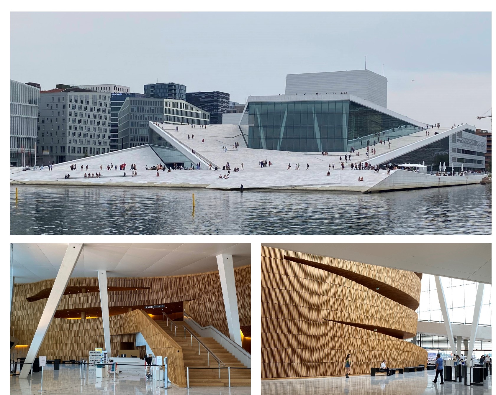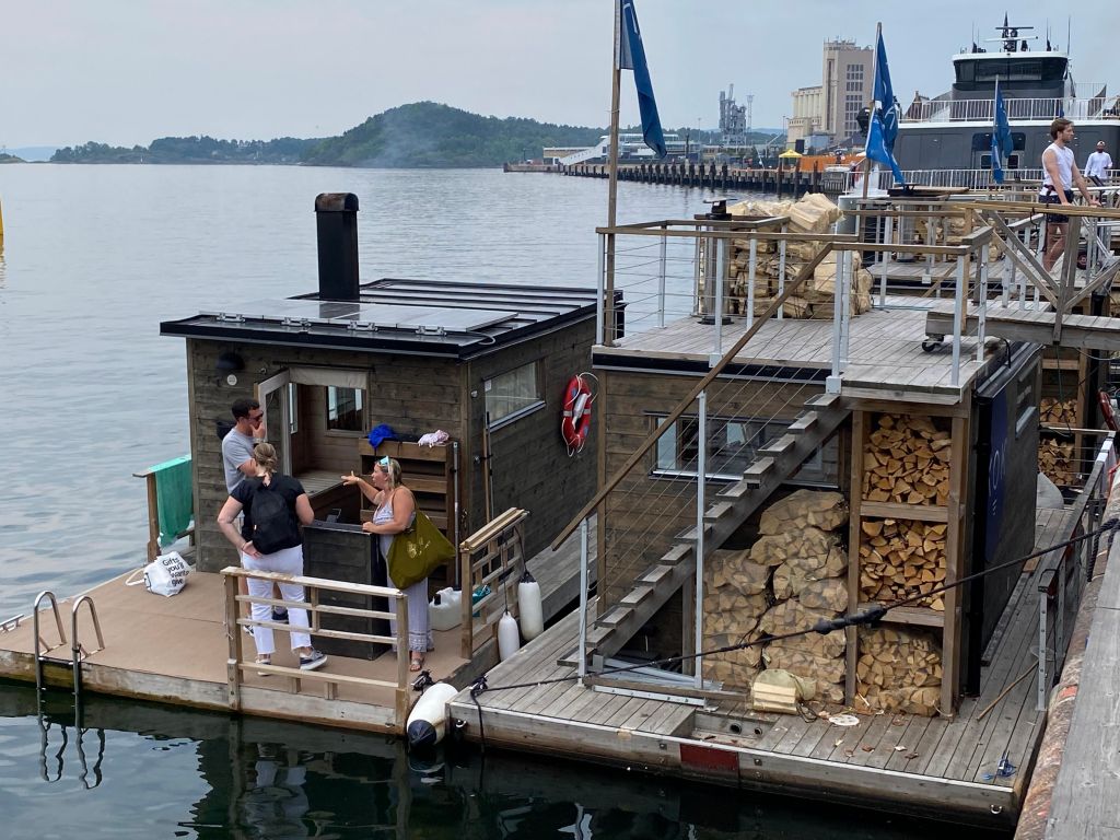 Luego visitamos el castillo, situado justo sobre la terraza donde comimos. La verdad es que el castillo no valía mucho la pena, pero era uno de los puntos que estaban recomendados. Y desde allí ya nos fuimos caminando hacia el edificio de la Ópera de Oslo, algo realmente impactante. Había leído mucho al respecto, e incluso en la programación del viaje hace un par de años llegué a conseguir una reserva para asistir a una representación, creo recordar que de la ópera Carmen, pero como no fuimos, ahí se quedó la cosa. Antes de llegar a la Ópera nos sorprendió ver las saunas que están en el puerto, justo enfrente. Son saunas flotantes, en las cuales la gente, tras darse un baño de calor en ellas, se tira al mar para refrescarse. Y hay muchas, algunas como muy llamativas.