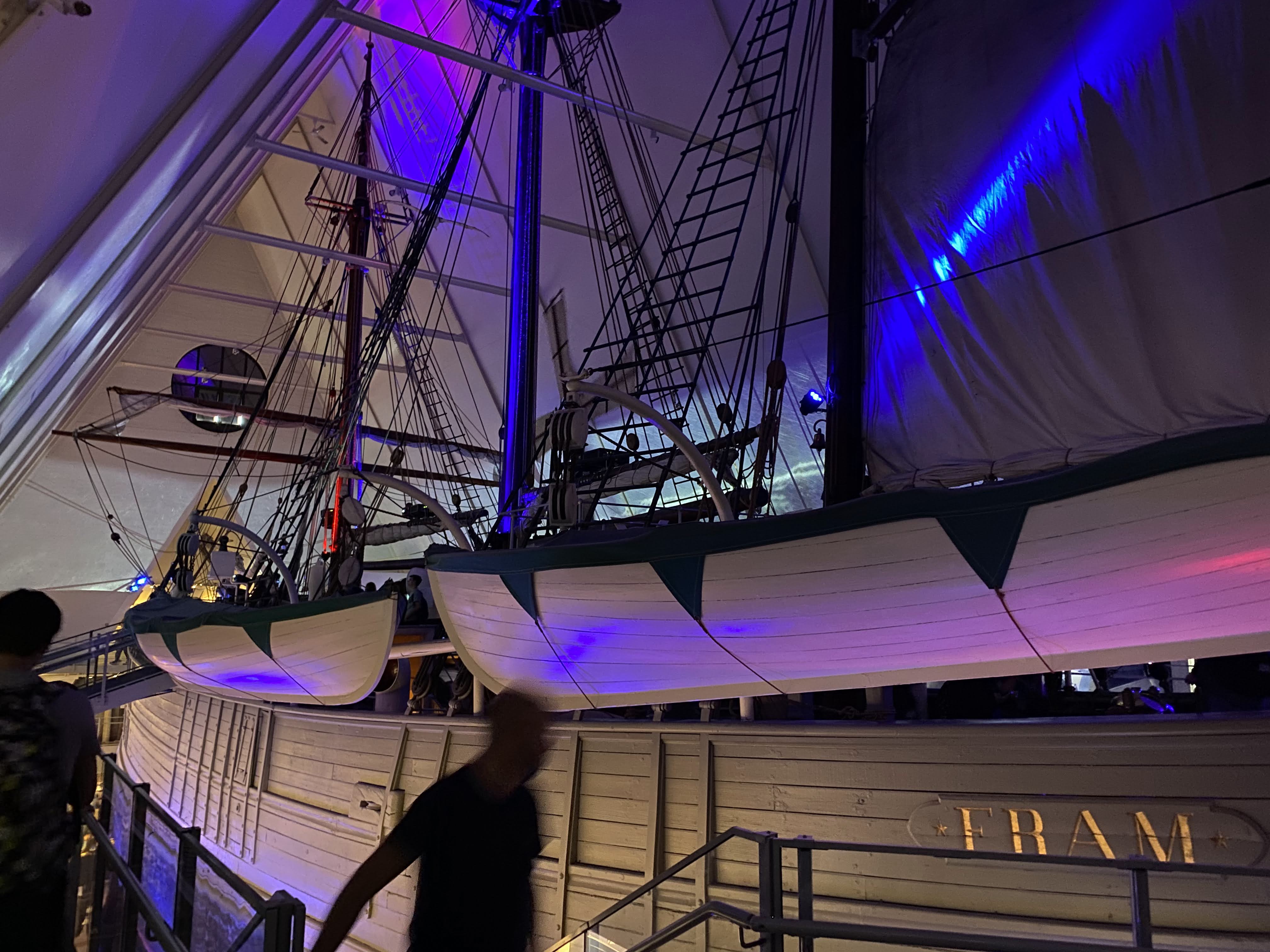 Visitamos con cierta calma el Fram, el museo sobre las expediciones de Amundsen y otros exploradores al polo sur y en general a los descubrimientos de las rutas polares. Es interesante y con muchas particularidades. Hay una reproducción a tamaño real del barco original que Amundsen utilizó. Y otros de menor tamaño, de expediciones posteriores. También pudimos ver en la sala de proyecciones una película sobre esos descubrimientos.
