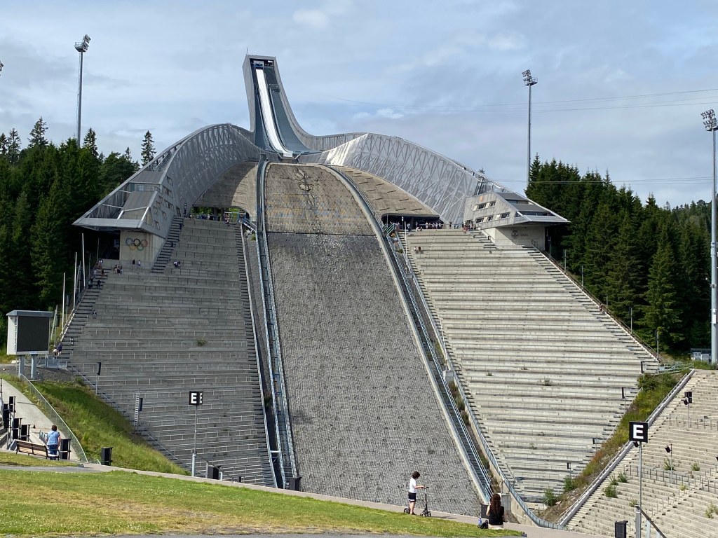La segunda parte del programa era ir a ver el museo del esquí y el trampolín de saltos que está en las afueras de Oslo. Tras tomar un bus llegamos a la estación del metro que nos debía acercar a Hollmenkollen. En la propia estación, mientras tratábamos de encontrar la parada donde había que bajarse, unos españoles que estaban allí nos dieron la información y con ellos hicimos el viaje. Era una pareja, ambos barceloneses, según ellos “ingenieros frustrados” que al no encontrar trabajo en España decidieron irse a Oslo, donde enseguida consiguieron contrato y se instalaron. Al parecer les cogió el último cierre de fronteras justo un par de días antes de viajar allí, por lo que tuvieron que quedarse en casa de los padres durante casi 8 meses “con lo puesto” ya que habían empaquetado y enviado todo previamente a Oslo. Pero en cuanto se abrió la frontera, ya se instalaron y están encantados allí.