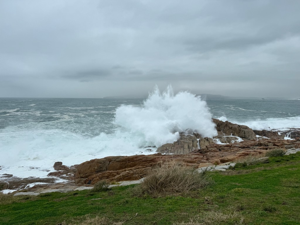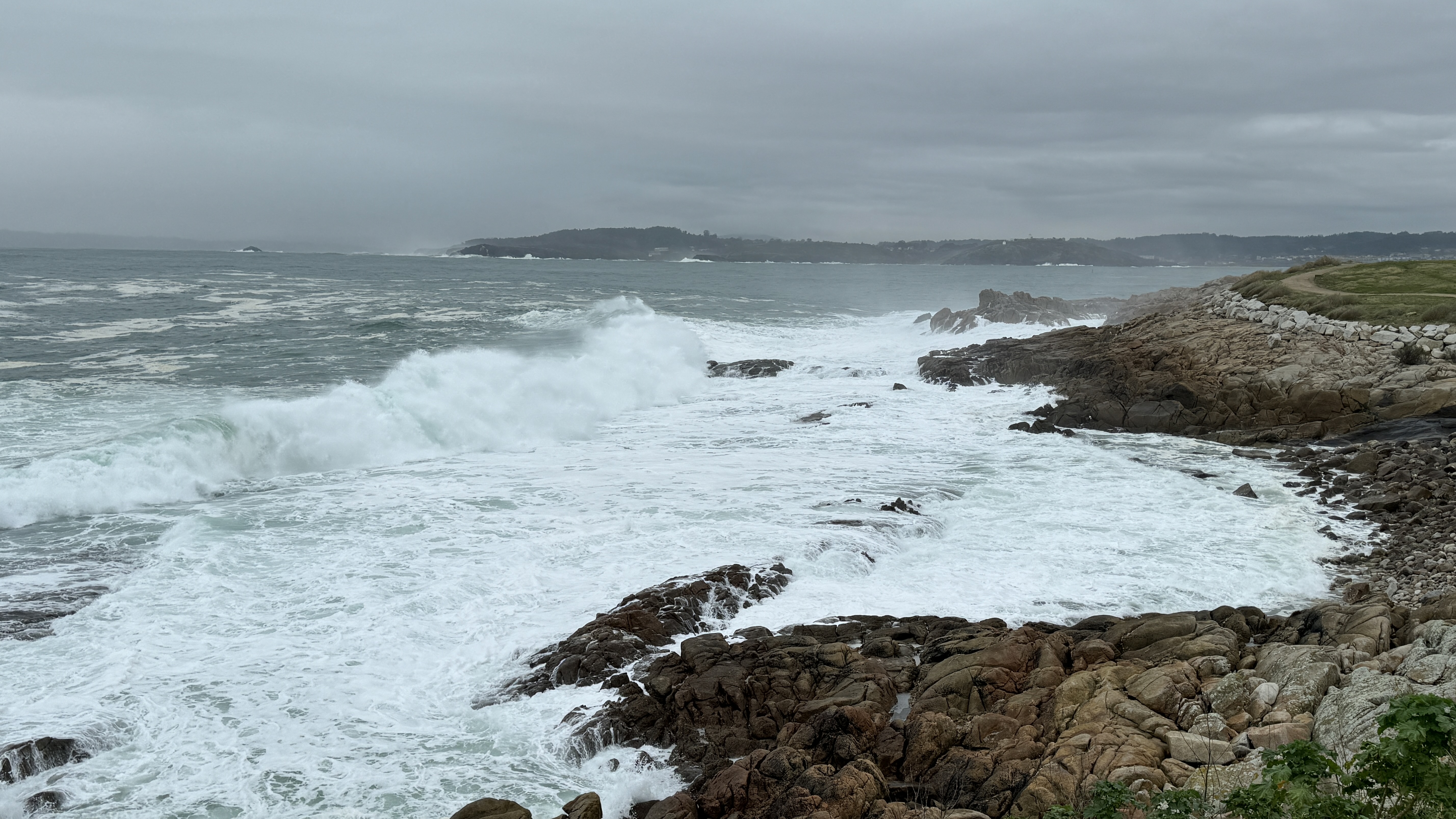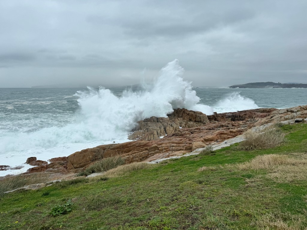 En las rocas próximas a los Menhires también llamaba la atención el choque de las olas y la rompiente en la ensenada próxima, si bien a medida que el mar se adentraba en la bahía, hacia el paseo marítimo era menor la virulencia del oleaje.