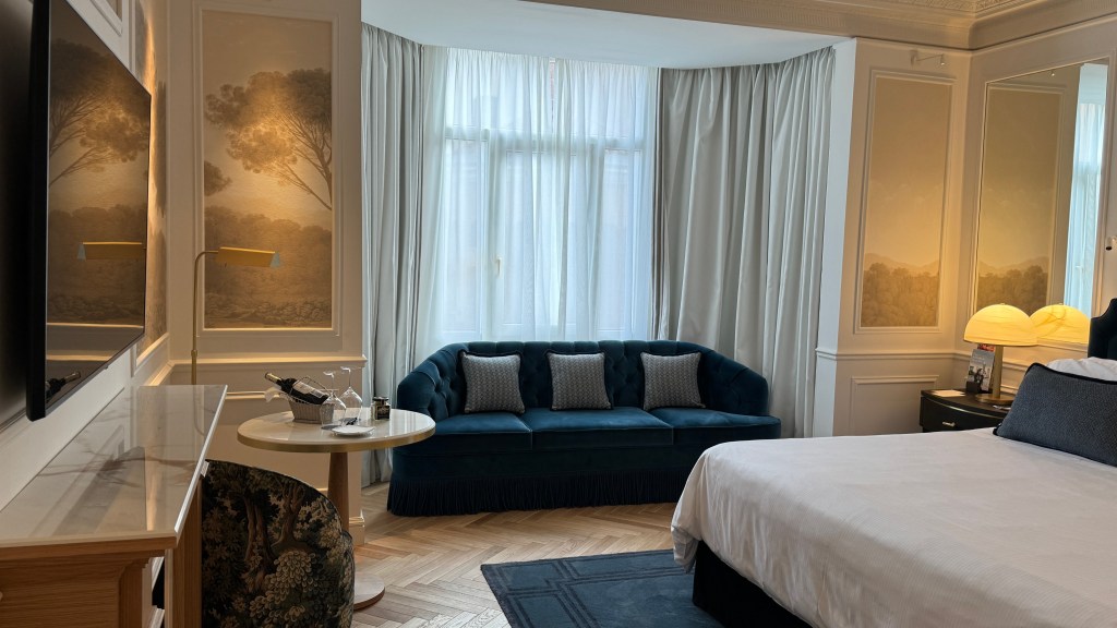 Asi pues el 14 de febrero, festividad de San Valentín (sin que al programarlo eso fuera un motivo concreto), nos montamos en un Alvia camino de Madrid, que por cierto llegó con algo más de media hora de retraso. Ya en la capital, marchamos directos al hotel, previo recorrido por un largo periplo en Chamartín hasta llegar a la parada de los taxis, debido a las obras que se ejecutan desde hace años en esa estación de ferrocarril. En el hotel, el Westin Palace, junto al Congreso de los Diputados, nos recibieron estupendamente y nos asignaron una amplísima habitación de las ya reformadas, todo un lujo. La elección del hotel estuvo motivada porque allí nos alojamos cuando en noviembre de 2018 viajamos a Madrid a comunicar a nuestros hijos que nos casaríamos unos meses después.