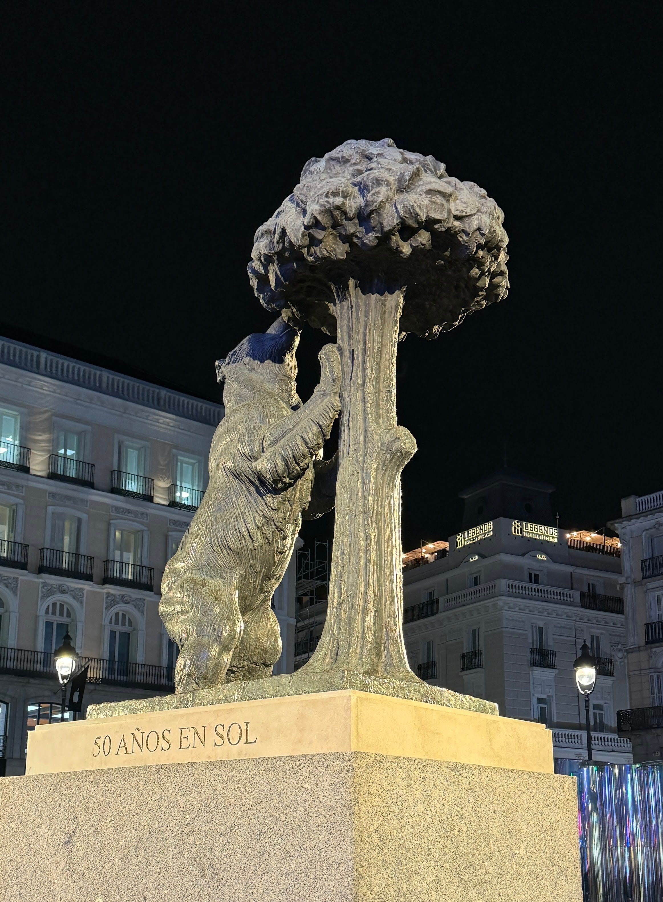 De camino hacia la Plaza Mayor contemplamos la cantidad de madrileños y turistas que se movían por la Puerta del Sol, que a lo largo de los años ha ido recibiendo numerosas reformas y en la que también la mayor parte de los edificios están ahora ocupados por importantes marcas comerciales. La antigua sede de la Dirección General de Seguridad la ocupa ahora la presidencia de la Comunidad de Madrid y una gran tienda de Apple ocupa el edificio que tiene a su izquierda la Carrera de San Jerónimo y a su derecha el inicio de la calle Alcalá. Incluso la figura del Oso y el Madroño ha cambiado de ubicación, porque donde estaba antes ahora se sitúa una gran entrada al Metro.