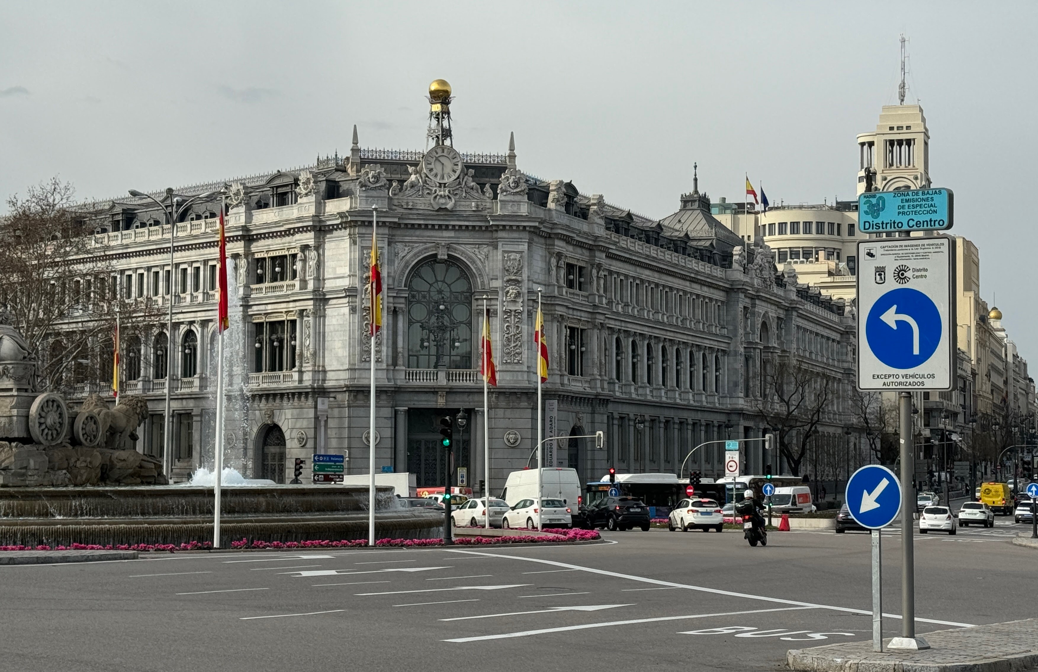 Desde allí regreso directo al hotel para estar puntuales a la hora prevista de la llegada de Ramón, aunque luego la realidad hizo que tuviésemos que esperar, ya que una manifestación frente al Congreso de los Diputados impedía el acceso de vehículos en aquella zona. Tuvimos que esperar a que la manifestación comenzara su desplazamiento hacia la estación de Atocha para poder salir con las maletas, porque Ramón había conseguido acercarse hasta donde está el edificio de la Bolsa y desde allí ya no tenía forma de llegar con el coche hasta el hotel. O sea, que no nos quedó mas remedio que cruzar el Paseo del Prado con las maletas hasta encontrarnos con Ramón. Una peripecia de las que los madrileños deben estar bastante habituados habida cuenta de la cantidad de manifestaciones que se producen en la capital de forma reiterada.