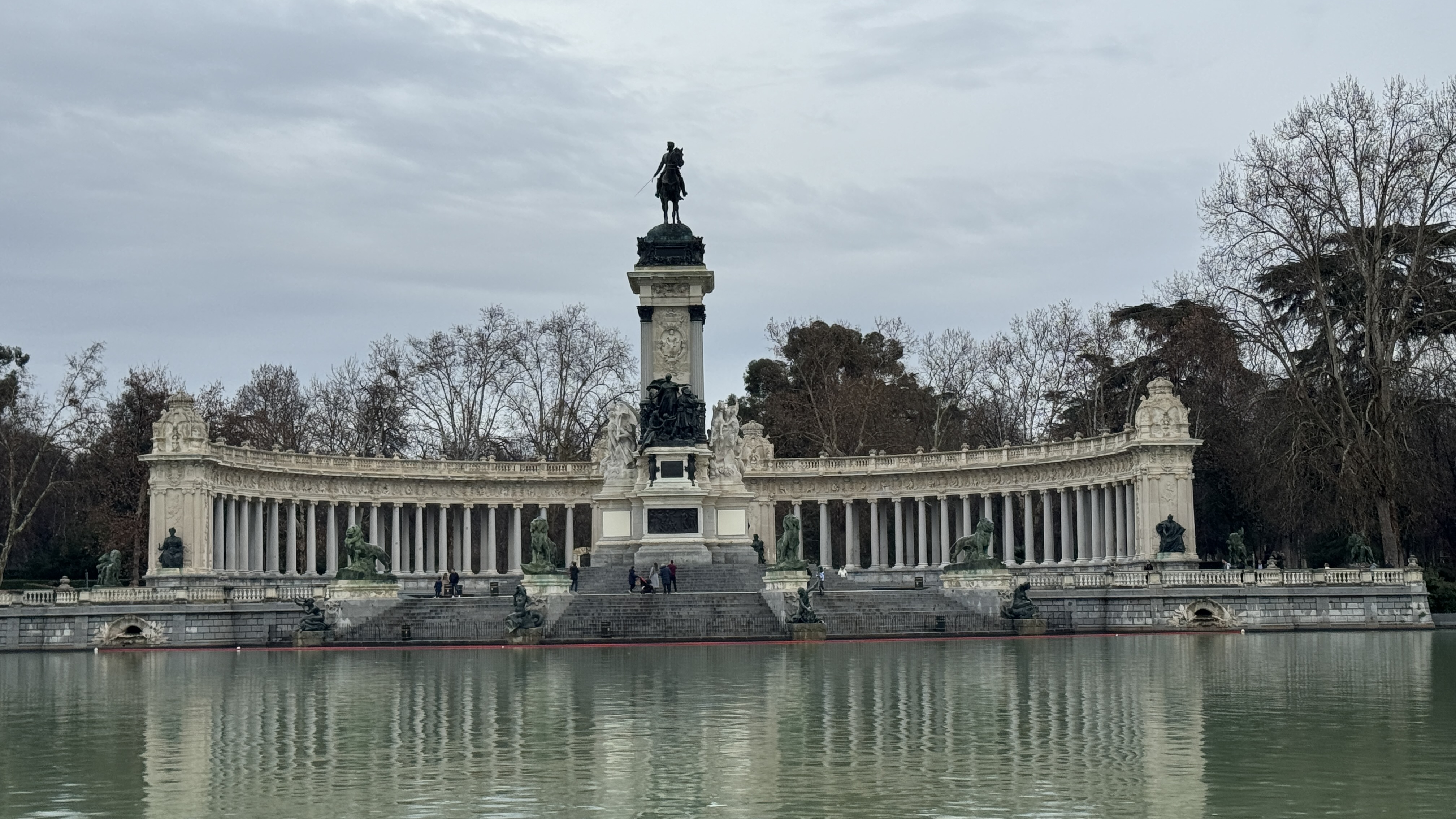 Terminada la comida, como en ese momento no llovía, decidimos caminar a través de los Jardines del Retiro en dirección a Cibeles, puesto que había conseguido reservar, por internet, entradas para los cuatro al museo de la fundación Mapfre para las 18,45 h. De camino hacia allí, al llegar a Cibeles intentamos también conseguir entradas para la exposición de Monet en el edificio del ayuntamiento, pero ya no nos daba tiempo y optamos por esperar la hora de nuestras entradas a la exposición de Marc Chagall tomando un refresco en el Café Gijón, ubicado a pocos metros de la fundación. Para esa hora ya había comenzado a llover de nuevo.