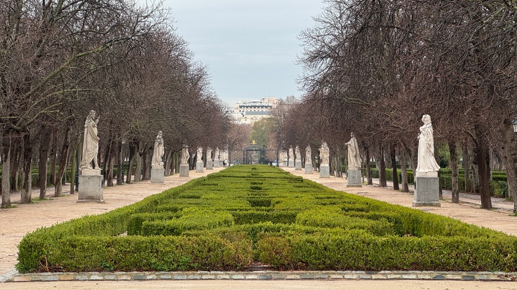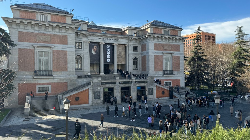 El programa del viernes era «completito» porque nos habíamos comprometido para comer en casa de Cuca y Lalo, unos amigos que viven en la capital; además por la tarde teníamos entradas para un musical y a la noche cena en Txistu con herman@s y cuñad@s. Y como además había que seguir visitando cosas, empezamos por un paseo hacia Los Jerónimos, pasando por los alrededores del Museo del Prado, donde ya, a primera hora, había cola de visitantes.