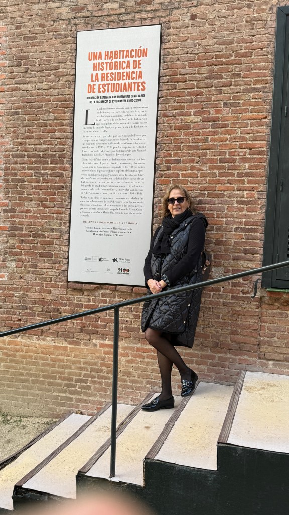 De ahí continuamos hacia el norte, en esta ocasión recorriendo la avenida de Alfonso XII, bordeando el Retiro hacia la Puerta de Alcalá, y pasando frenter al Cason del Buen Retiro, para continuar por la calle Serrano, siempre en dirección norte, pasando por Colón y para terminar en la zona de El Viso, donde estaba el segundo objetivo del día, que no era otro que la Residencia de Estudiantes, en la calle Pinar, para seguir el rastro de Lorca. Fue una ocurrencia de Pilar, que tenía ganas de conocer los pormenores del lugar donde Federico se había alojado. Como no había visitas guiadas, hubimos de conformarnos con ver el recinto y visualizar desde fuera una habitación «tipo» de las que los estudiantes usaban. Por allí pasaron en aquellos años (antes de 1936, año en que se cerró) artistas como Dalí, Buñuel, Severo Ochoa, el propio Lorca y otros muchos menos conocidos.