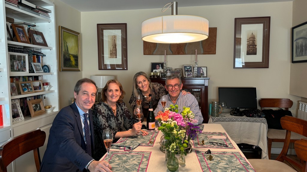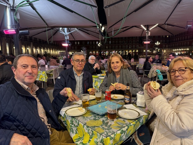 Puntuales a nuestra cita, llegamos a la casa de nuestros amigos Cuca y Lalo, donde nos encontramos también con su hija Elena, que además es ahijada de Ipi. Tuvimos una amena comida y al término de la misma hicimos un brindis para que no pase tanto tiempo hasta que volvamos a coincidir en un viaje, porque con estos amigos y con Rafa y Elena ya habíamos estado hace ahora 14 años en Pedraza, cuando asistimos al Concierto de las Velas, y posteriormente en Sevilla, años después, cuando nos invitaron a su caseta en la Feria de Abril. En cualquier caso, habíamos acordado ya que cenaríamos la noche siguiente en un restaurante del centro de la capital.
