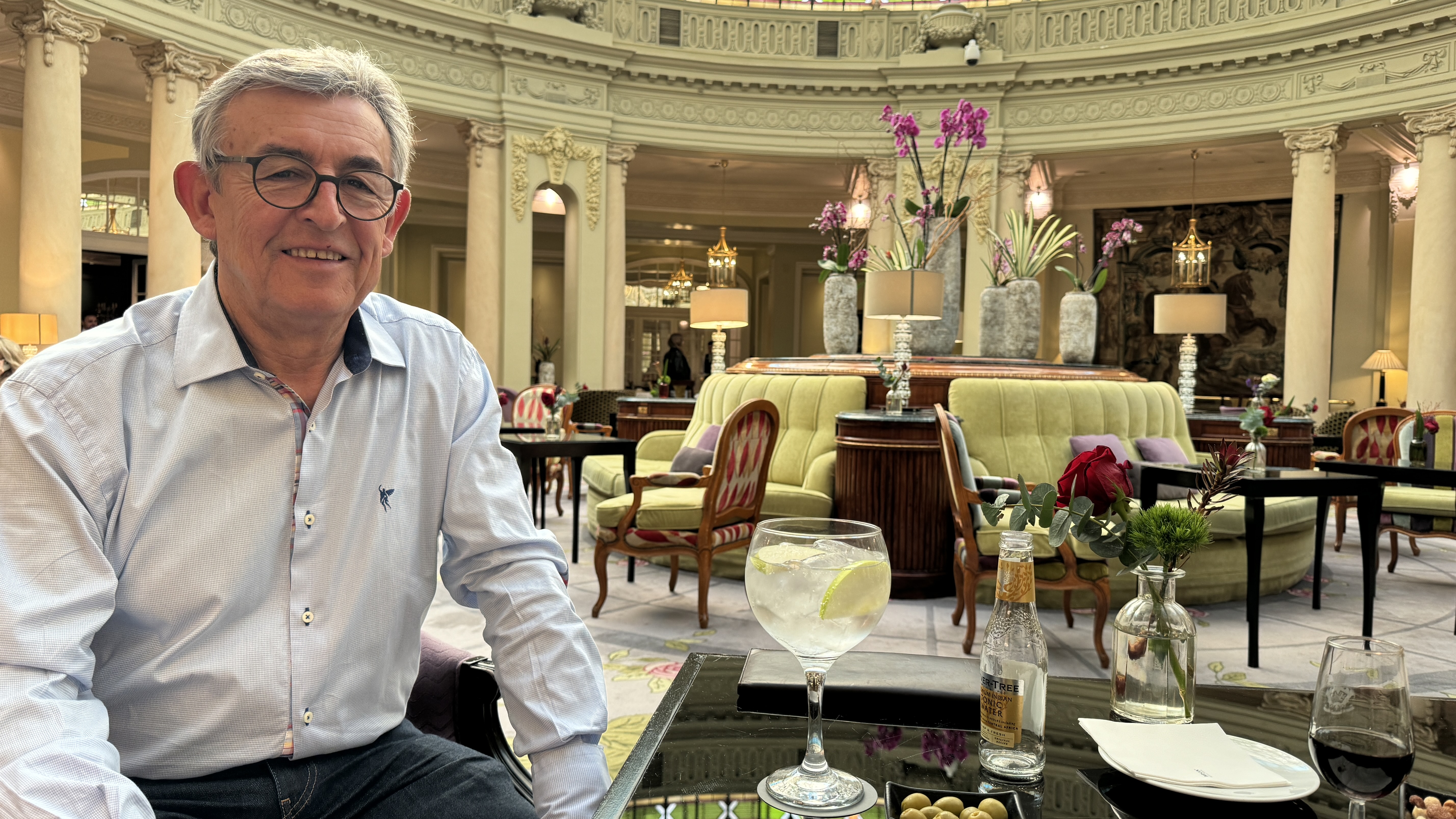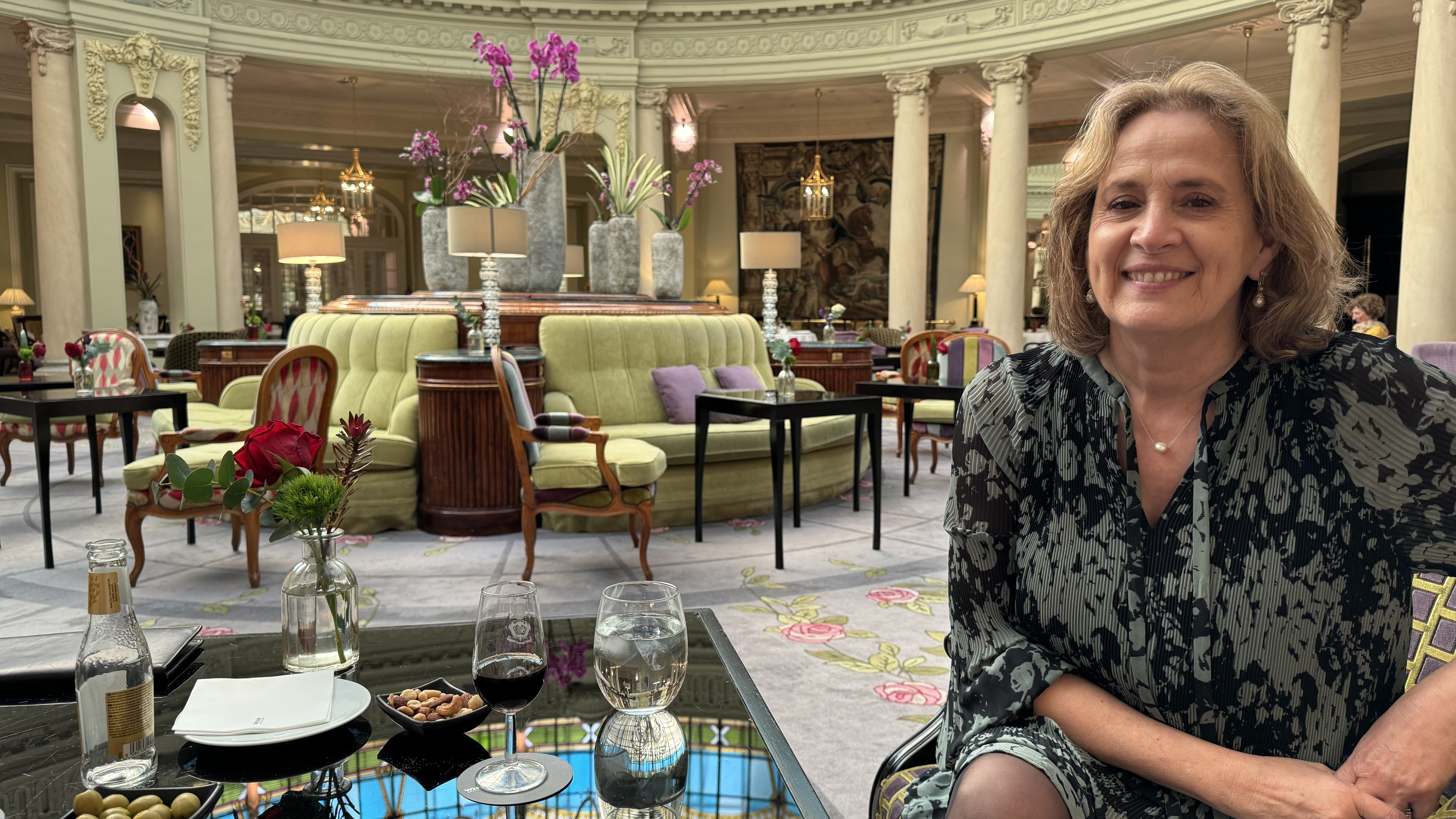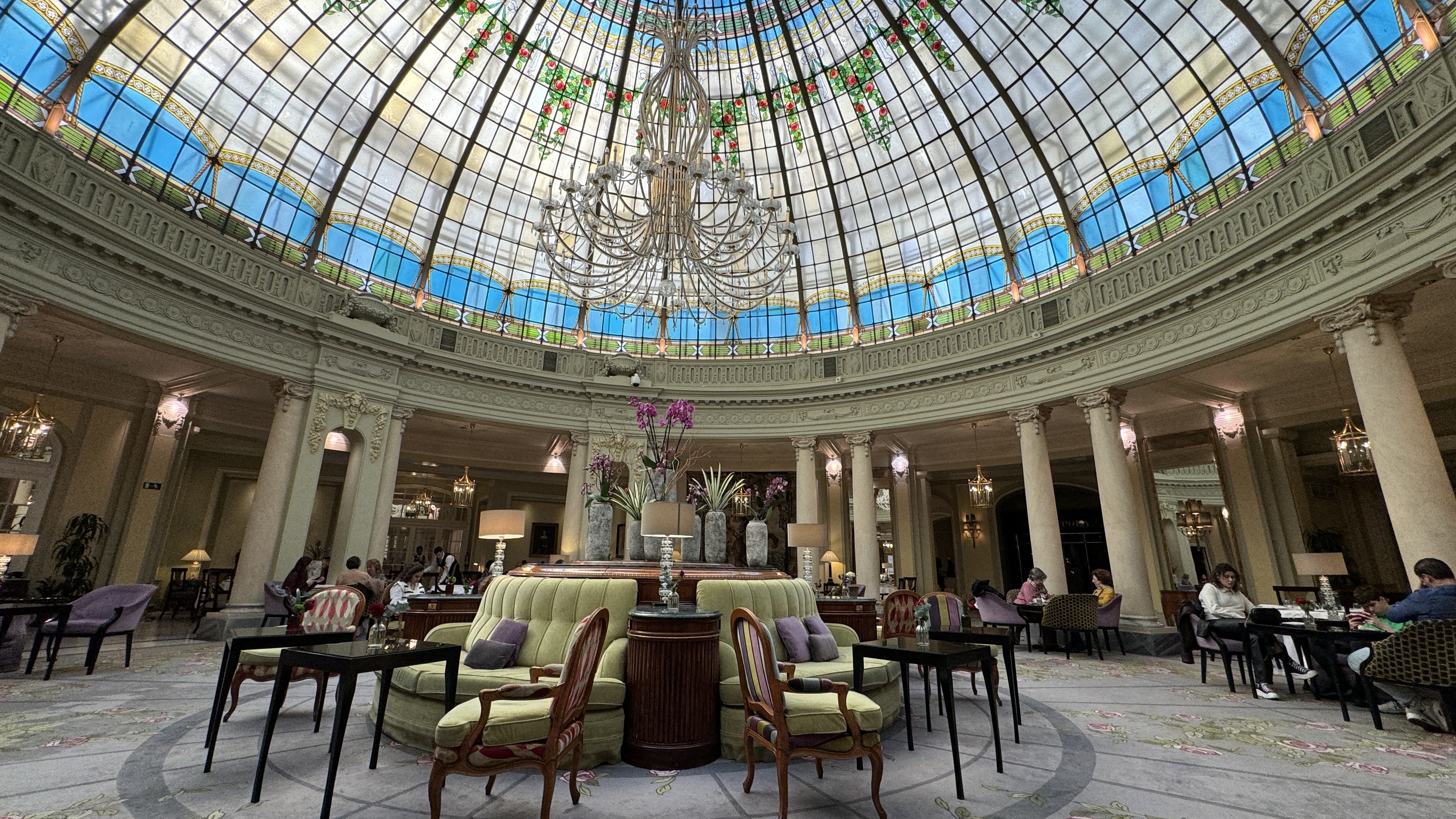 Y pensando en la cena, con ánimo de tomar un descanso antes de volver a salir a la tarde-noche, nos fuimos al hotel a disfrutar un poco de las instalaciones del Palace, y más en concreto para tomar un digestivo en la preciosa cafetería coronada por la cúpula. Allí estuvimos un buen rato recordando el momento en que, cinco años atrás, grabamos el video que mandamos a los amigos para invitarlos a nuestra boda.