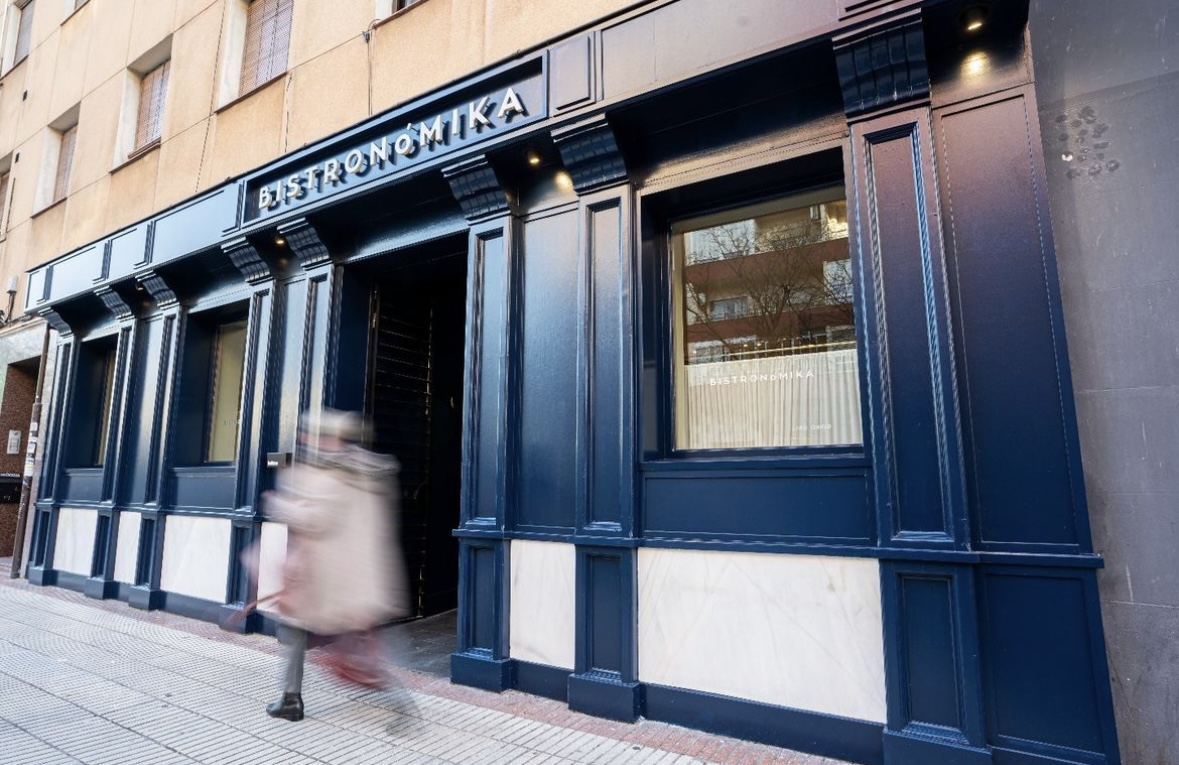 Al terminar la visita, que hicimos con bastante agilidad debido a la hora, y ya reunidos con mi hermana y su marido, decidimos caminar hasta el restaurante Bistronómika, en la calle Ibiza, donde yo había reservado para comer. La verdad es que aunque pensamos que 45 minutos caminando hasta el restaurante nos iba a sentar como preparación para la comida, comenzó a llover, al principio de forma tenue pero poco a poco la lluvia se fue incrementando y terminamos caminando deprisa para no mojarnos demasiado, ya que solo había un paraguas (que utilizamos Ramón y yo) mientras las chicas, equipadas con capucha, poco a poco se fueron remojando más de lo necesario.