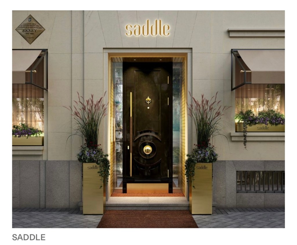Para la cena Lalo reservó en el restaurante Saddle, un lujoso local que en otro tiempo estuvo ocupado por el antiguo Jockey. Está ubicado en una paralela a la Castellana, justo detrás de lo que en su día fue la sede de la Presidencia del Gobierno, en Castellana 3. Es uno de los lugares de los que se dice que son habituales de la «jet set» de Madrid. Nuestra mesa quedaba justo frente al gran ventanal a través del cual se divisa la cocina, con lo que podíamos observar las evoluciones de los chefs. En cualquier caso, cenamos divinamente y terminamos la velada con unas copas en el propio restaurante. Y como la noche estaba agradable, vuelta al hotel caminando.
