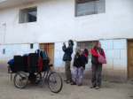 Ayer estuvimos dando un pequeño paseo por el pueblo después de terminar de pelar las patatas y abrir los guisantes (estoy hecho un verdadero artista en ambas labores), y nos unimos al grupo de mujeres que hacían cola ante el Banco de la Nación para cobrar la ayuda que da el gobierno cada dos meses. Conseguimos que nos permitieran hacer algunas fotos (cuando les dices que si te dejan hacer una foto, te dicen que sí, si les pagas un sol, que viene a ser como 30 cts. de euro). Pero hicimos buenas migas y al final hubo fotos sin pagar porque les dijimos que nosotros estábamos trabajando en Hatunsonqo gratis.