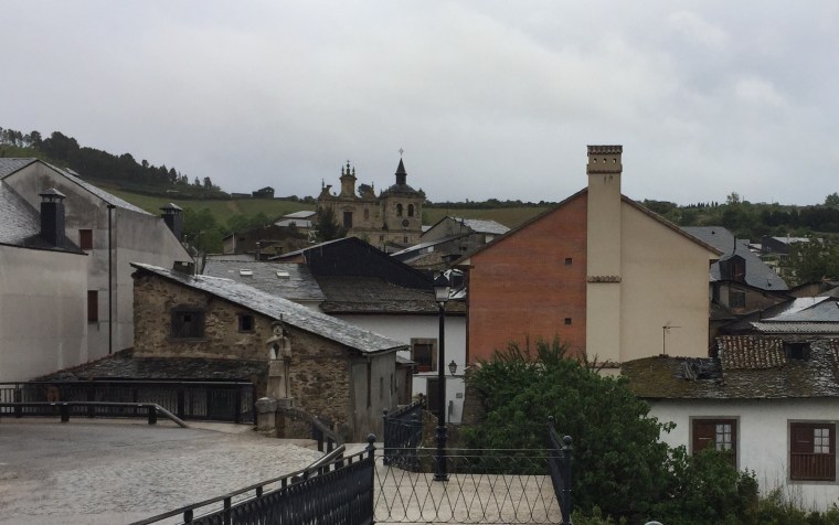 En todo caso , hoy ha sido un día en que todos o casi todos los bares de la zona que he transitado han estado abarrotados, porque hay que señalar que desde el fin de semana, y fundamentalmente desde el lunes el número de caminantes se ha multiplicado por cuatro o por cinco. Hoy eran numerosos los grupos de 4 o más personas, y no sólo extranjeros sino tambien muchos españoles y otro dato a reseñar es que hay ahora muchos más jóvenes, españoles y extranjeros.