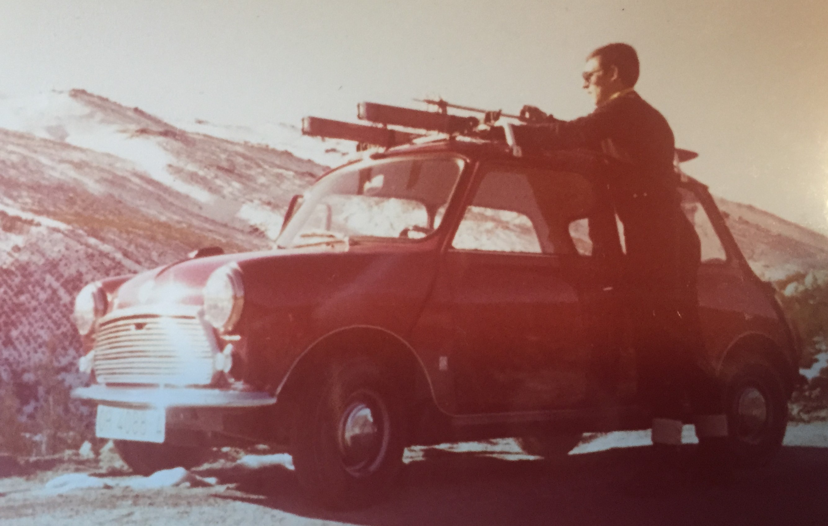 Años después, cuando yo estaba en la «mili» (hoy estoy suena desfasado, claro está..), quise retomar la afición y para ello invertí o más bien me embarqué en la compra de dos juegos de esquís y tres pares de botas, para dos de mis hermanos (Berta y Rafa) y para mí. Los esquís eran un juego para mi y otro para compartir entre mis hermanos, que eran quienes me acompañaban a Manzaneda. Esa inversión la realicé pagando en cómodos plazos mensuales en la tienda de img_7948deportes que La Región (el diario orensano) tenía en la capital de las Burgas. Yo por aquel entonces trabajaba y podía atender esos pagos. También hay que señalar que por aquellas fechas Manzanedaimg_7946 era una zona habilitada mínimamente para el esquí, ya que no había instalación alguna (en una de las fotos puede verse como empezaba a montarse lo que sería luego la cafetería) y la forma de esquiar era echarse las tablas al hombro, subir la montaña hasta donde cada uno aguantase, y luego tirarse hacia abajo hasta llegar a zona llana donde fuese facil parar. Las excursiones las hacía los domingos, durante el invierno de 1973,img_7947 cuando estaba en la mili. Y en una de esas escapadas a Manzaneda conocí a un grupo de estudiantes de enfermería de la que salieron luego un buen grupo de amigas y amigos. Yo por entonces tenía el Mini que me permitía esos devaneos.