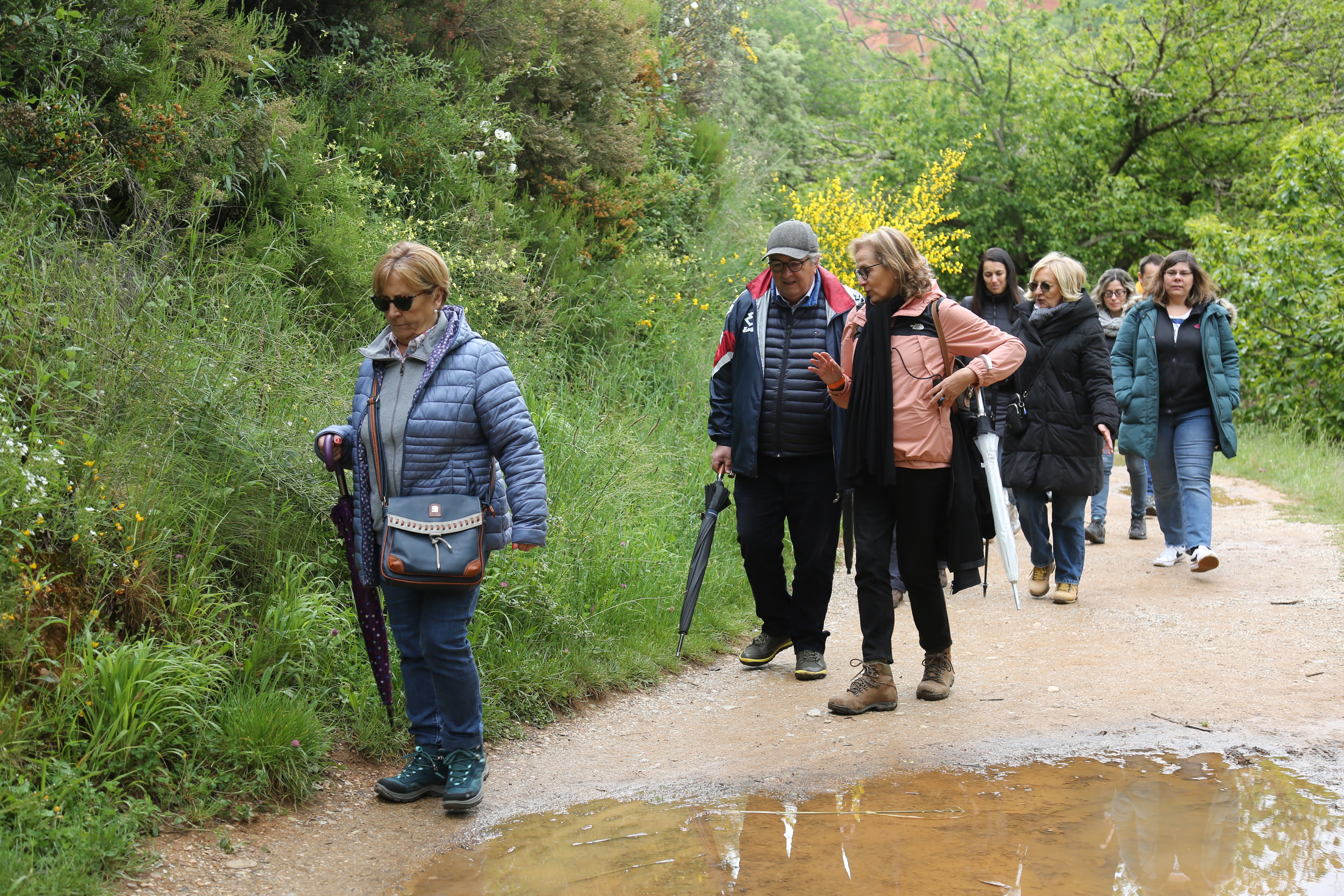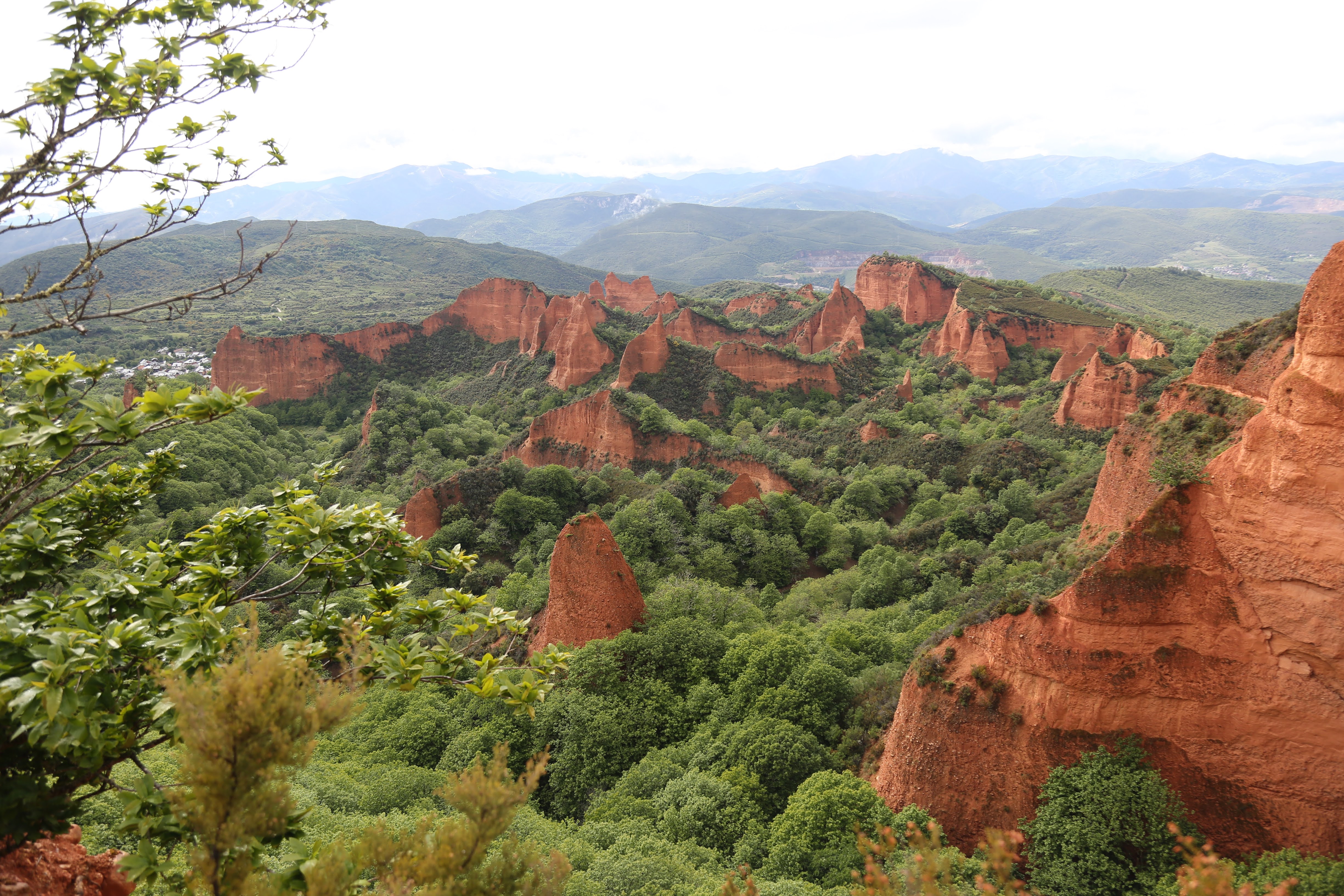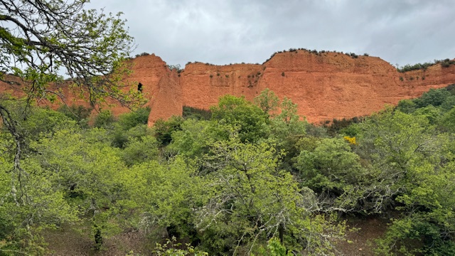 Hay que decir que aunque se suponía que en estas fechas el tiempo sería bueno, la realidad no estuvo acorde con la previsión y todos viajamos con lluvia, aunque con la suerte de que a nuestra llegada la visita de Las Médulas pudimos hacerla sin que nos lloviese durante las dos horas largas que duró. Los diez asistentes a la misma ya conocíamos aquello, y yo personalmente en más de una ocasión, pero siempre resulta agradable una nueva oportunidad de ver la transformación que sufrió aquel paraje y de conocer algunas precisiones que se aprenden en cada nueva visita. Mi sensación personal en este caso fue que cada vez más la vegetación va comiendo las vistas de la tierra arcillosa pero sin embargo al comparar las fotos actuales con las de otras de iguales fechas del año 2008 demuestran que no es tan notorio.