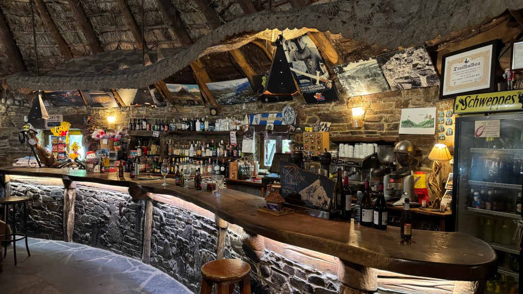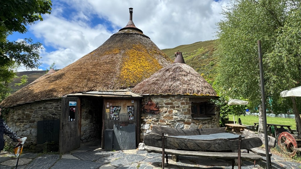 El paso siguiente era Balboa, donde también nos encontramos con que La Casa de las Gentes, un museo de cosas tradicionales de la zona, también está cerrado desde la pandemia. Al parecer planean abrirlo a partir del mes de junio, pero no está muy clara la cosa. Hicimos unas fotos sobre el puente de los enamorados, y visitamos la palloza-restaurante que algunos no conocían. Y como nos habíamos tomado con calma tanto el paseo por Villafranca como la estancia en Balboa, pronto se acercaba la hora de la comida, y volvimos a los coches para subir a Cantejeira, ya que la comida estaba reservada arriba, en la Palloza de Cantejeira.
