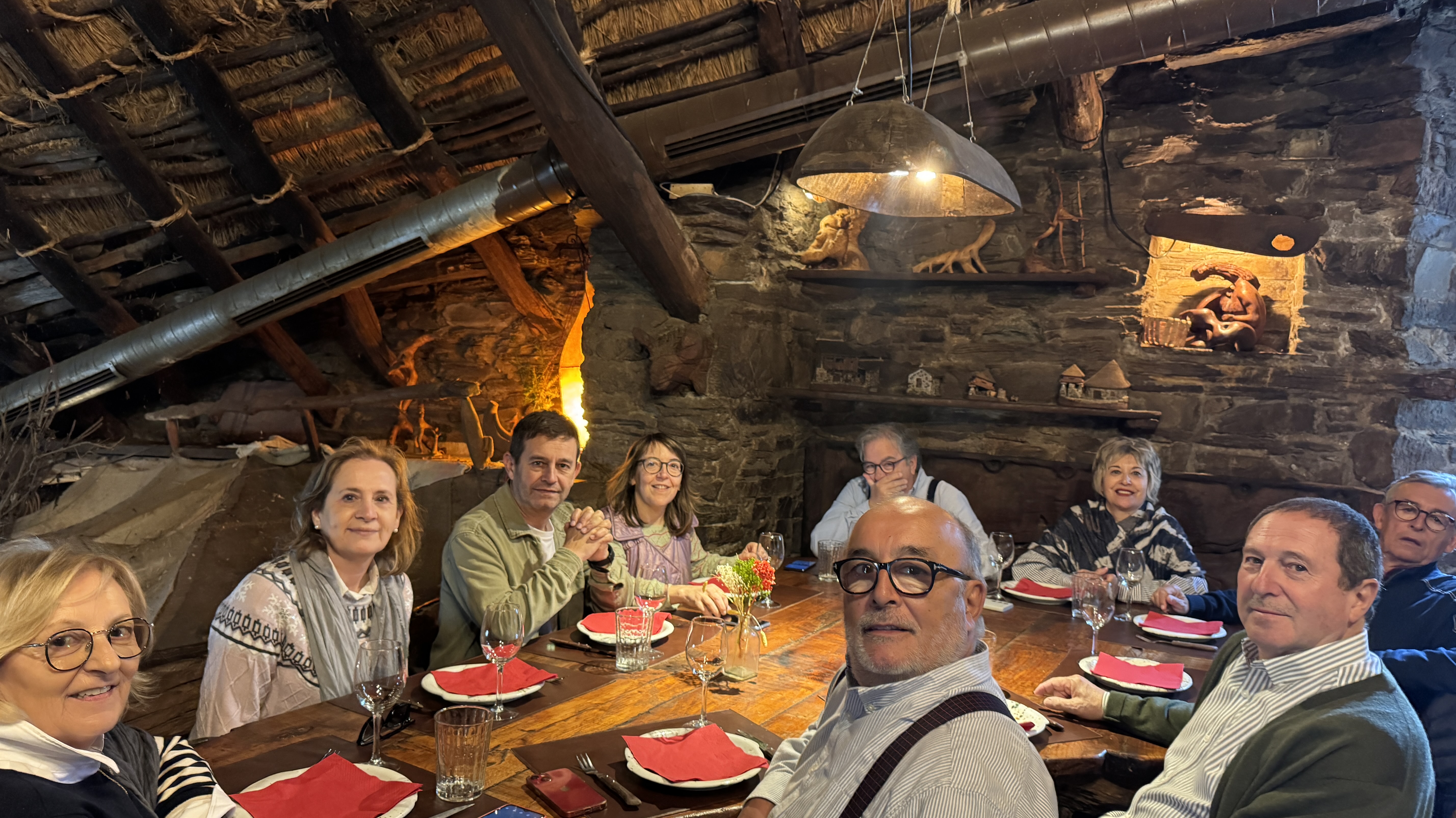 La comida resultó francamente bien. El restaurante tiene una tipología muy rústica, y la atención del personal ha sido excelente al igual que el menú elegido a base de platos típicos de la zona, con lo que todos los asistentes salimos de allí satisfechos de la elección. Hay que dejar constancia de que durante el tiempo que duró la comida cayó una buena tromba de agua, haciendo realidad las previsiones meteorológicas, pero ello no nos afectó porque estábamos a cubierto.
