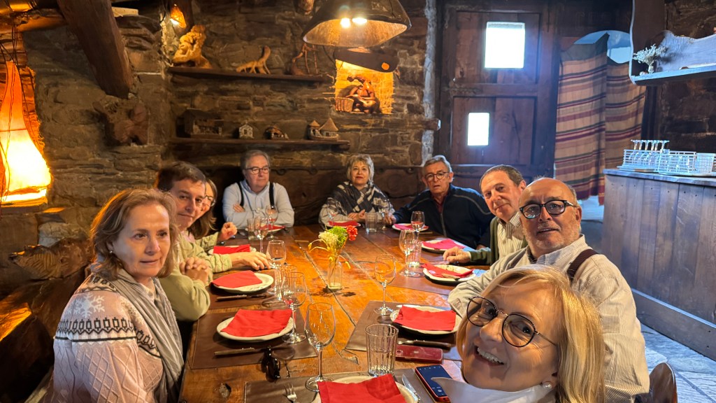 Ya de regreso a la casa rural, finalizamos la primera jornada tomando unos digestivos y con animada charla, a lo que ayudó la buena temperatura interior con que encontramos el alojamiento, con la calefacción a pleno funcionamiento. Entre pitos y flautas era más de la una de la madrugada cuando nos repartimos por las cinco habitaciones, señalando la hora del desayuno para las 9 de la mañana siguiente.