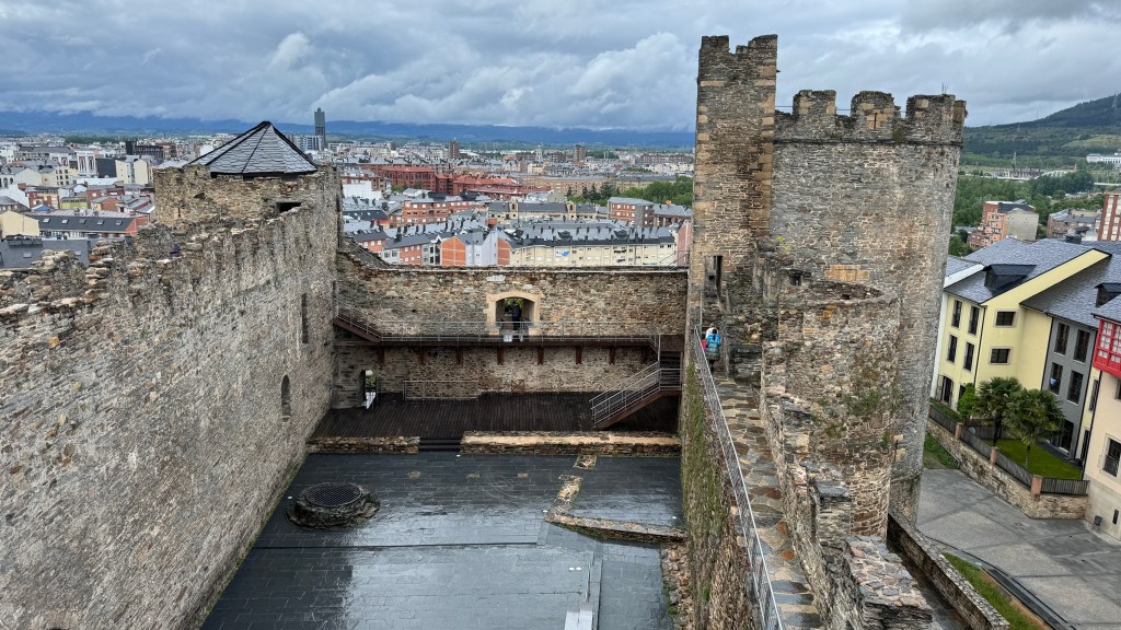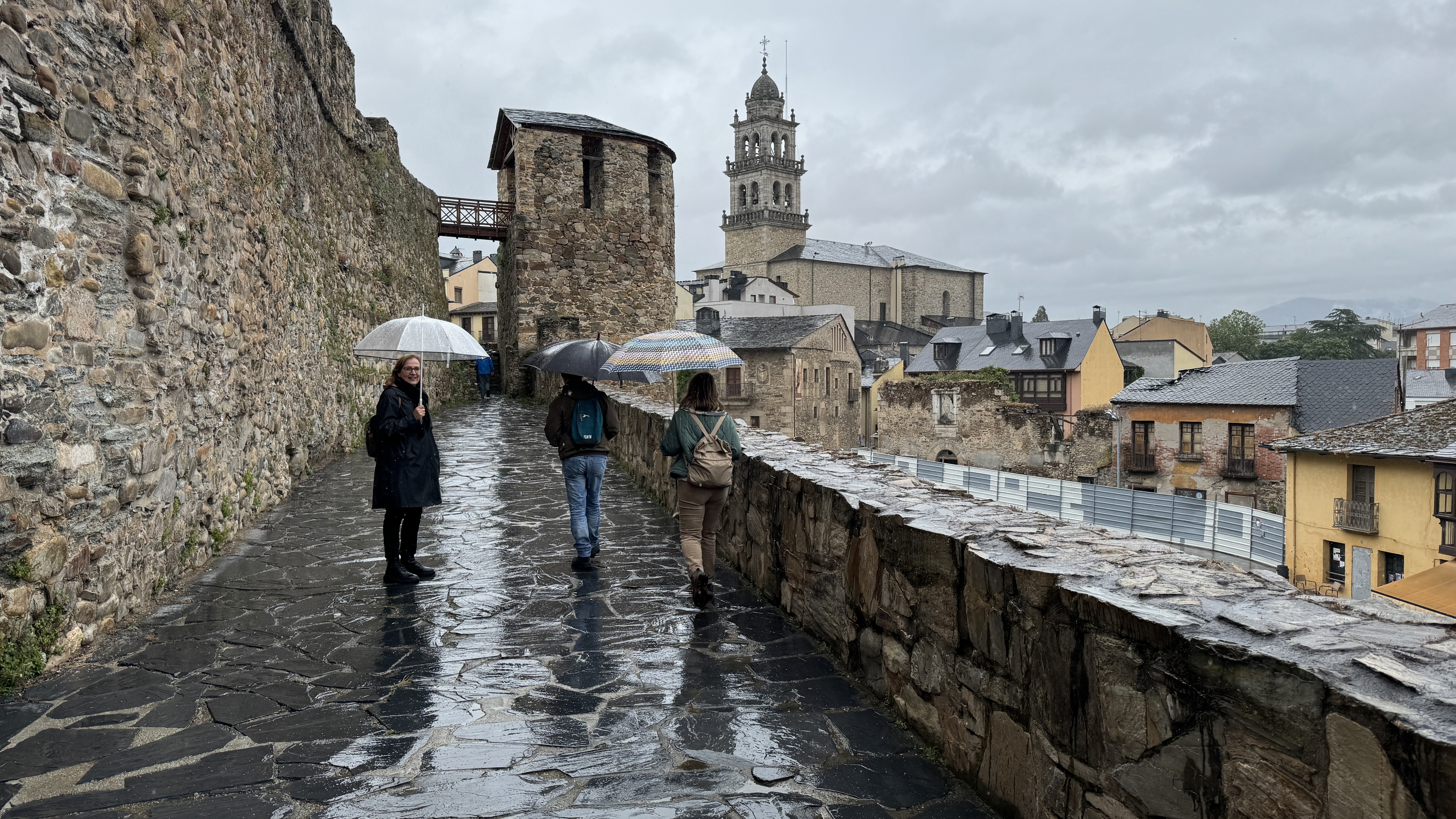 Al entrar nos dirigimos al albergue de San Javier, al que habíamos enviado las mochilas. Como no íbamos a pernoctar allí, la idea era solo ducharnos, y recoger las mochilas antes de ir a la estación de autobuses. Resultó que el albergue estaba a tope porque en Astorga se junta el camino francés con el de la Vía de la Plata y al parecer ya el volumen de peregrinos del francés es muy elevado a estas alturas de la temporada.