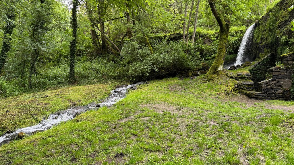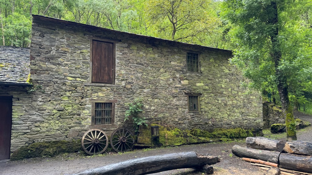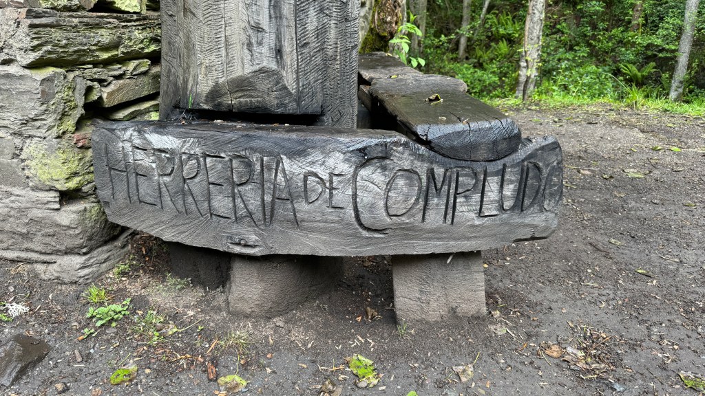 A la mañana siguiente, sábado 18, después de haber desayunado de forma contundente, nos dirigimos a la primera de las actividades del día, que fue la visita a la Herrería de Compludo, situada a unos 20 minutos de Molinaseca. Aunque teóricamente iba a ser a las 11, hora de apertura, y nosotros llegamos allí con más de un cuarto de hora de antelación, la demostración no comenzó hasta las 11,30 por lo cual tuvimos tiempo de observar el entorno con tranquilidad. Y hubo suerte de que no llovía.