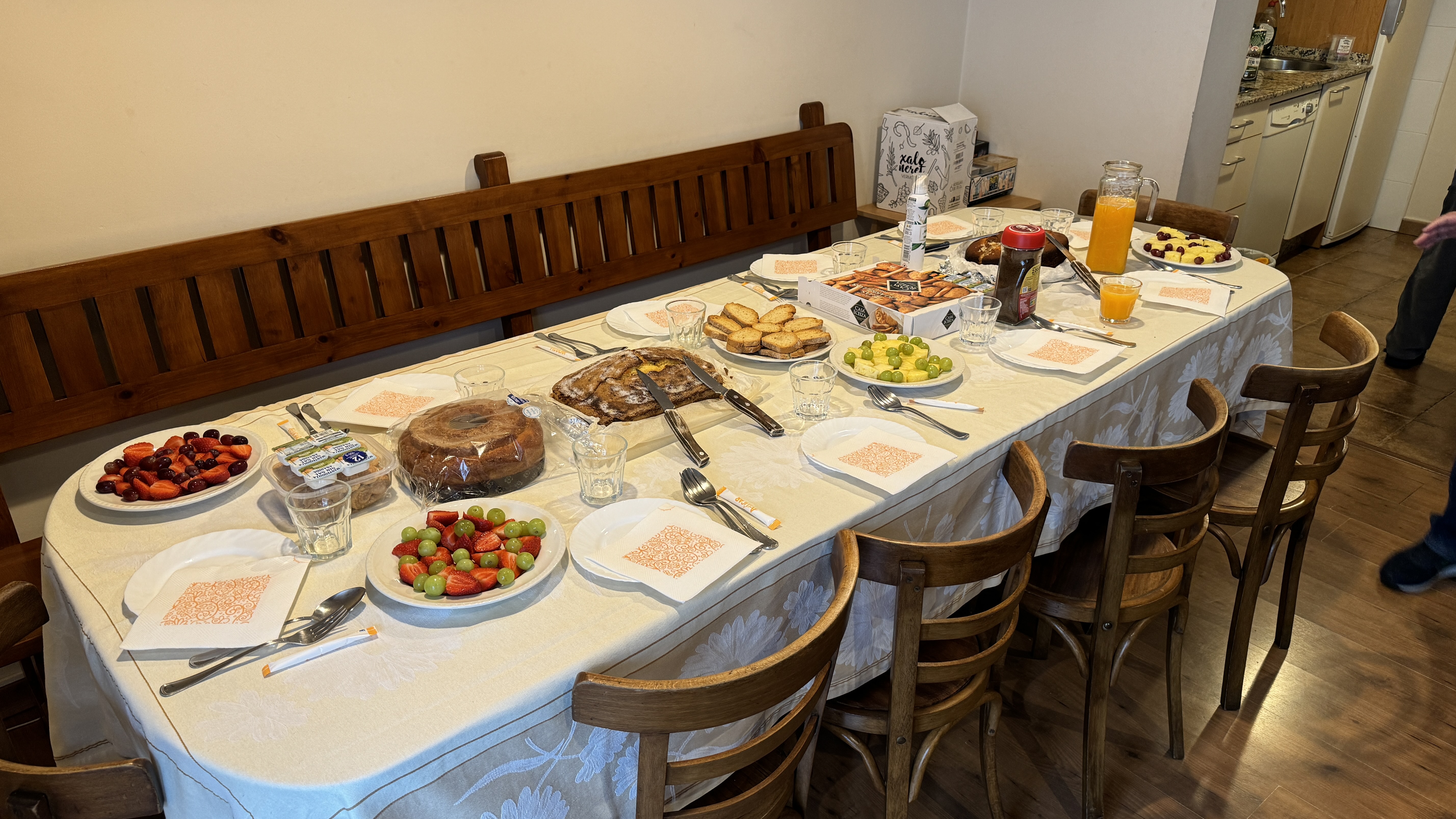 A la mañana siguiente planificamos para desayunar a las 9, y un poco antes nos situamos unos cuantos en la cocina para hacer los preparativos del desayuno, habida cuenta de que nos dejaban todo lo necesario, pero debíamos prepararlo nosotros. Entre unos y otros colaboramos para poner todo a punto y aunque echamos en falta algo de fruta, pudimos desayunar de forma generosa y salir asi bien preparados para llegar hasta la hora de la comida.