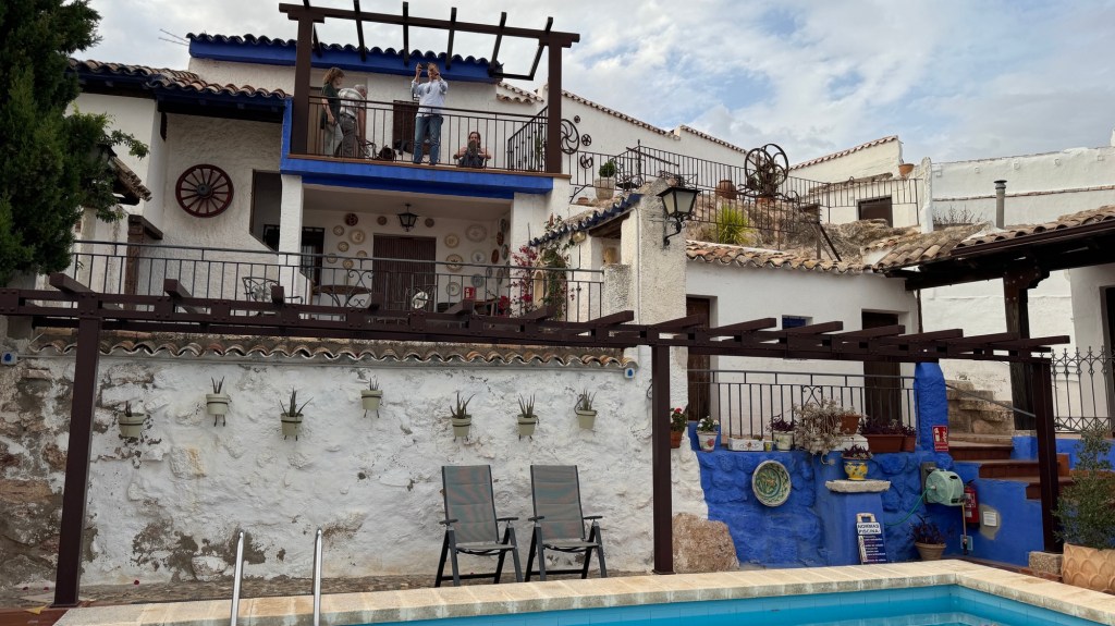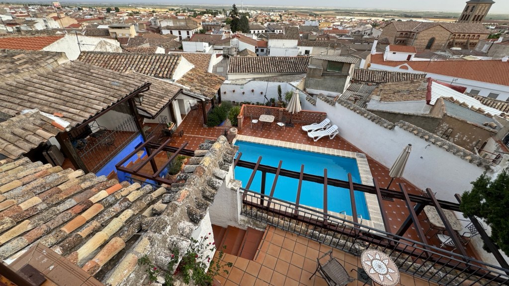 Y el tercer destino, y último de esta jornada fue Campo de Criptana, donde habíamos reservado el alojamiento en el hotel rural Casa de los 3 Cielos. Es una edificación en varios niveles de alturas, con cada una de las habitaciones en diferente posición, lo que da una original imagen. Tiene varias terrazas e incluso una piscina.