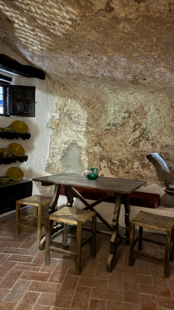 La casa cueva es una construcción excavada en la roca, en la que se han habilitado diversas habitaciones y que en su momento estuvo ocupada por una amplia familia. Parece ser que hay muchas en este barrio y con ese descubrimiento ya nos evitamos la visita que teníamos prevista a otra casa cueva en la zona.