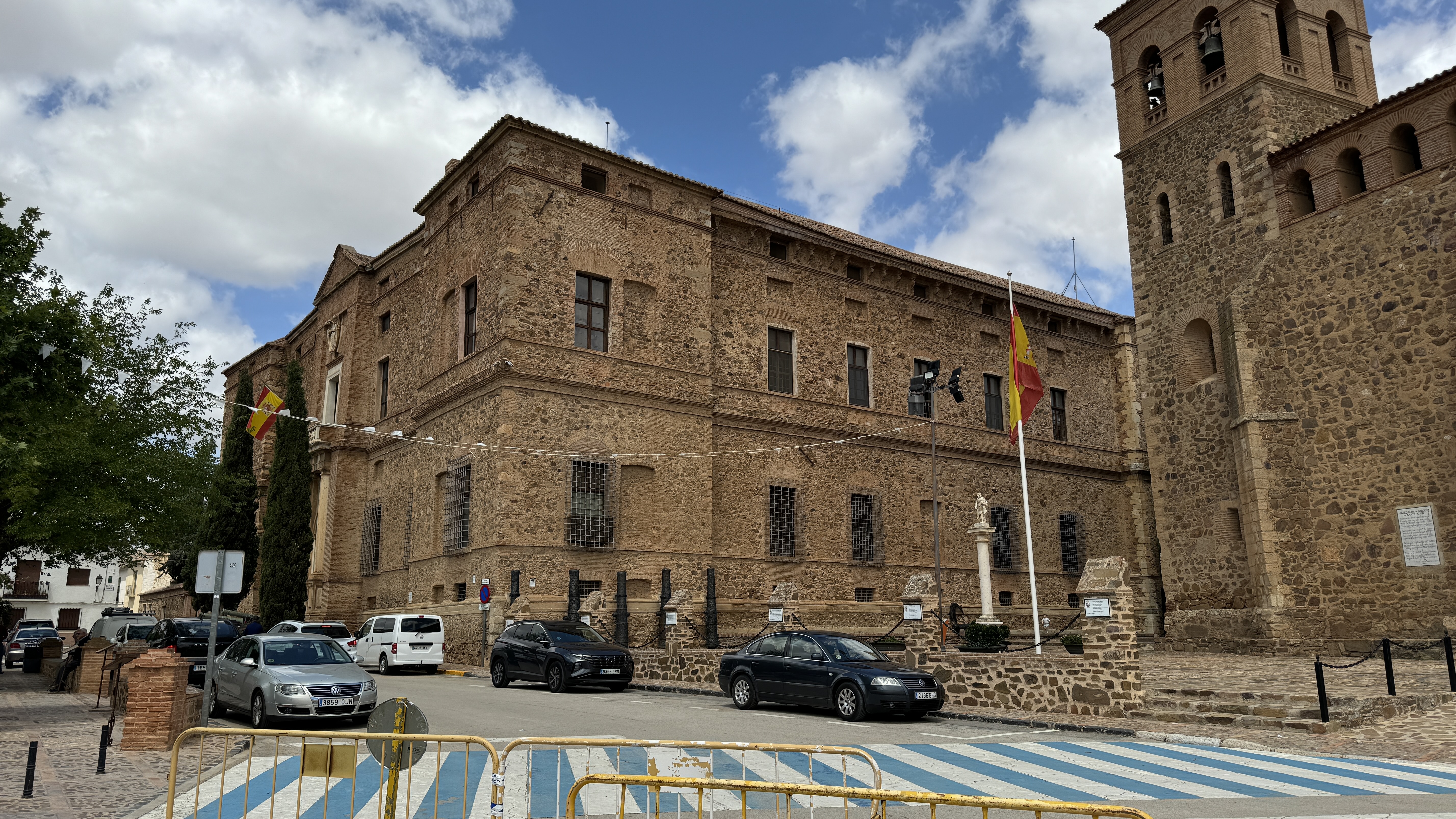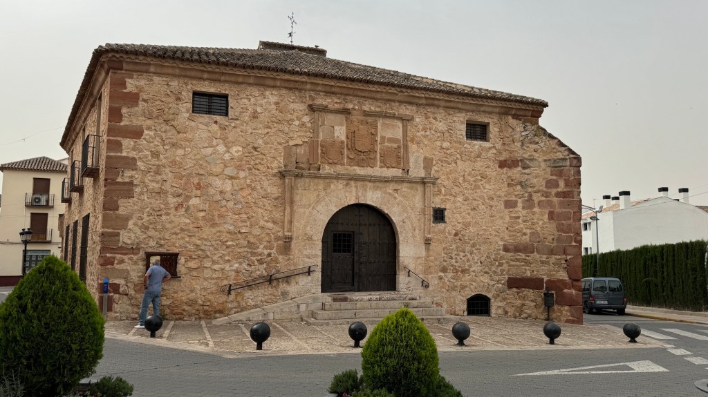 De la Iglesia pasamos a la Alhóndiga, ubicada a escasos metros. Ese edificio fue el depósito de cereales en los siglos pasados, ejerciendo un papel similar al del Pósito Real de Campo de Criptana. Y ya en épocas más recientes, se utilizó como prisión, función que ejerció hasta poco después de la muerte de Franco. En sus columnas quedan señales dejadas por los reos mediante grabaciones en la piedra. Ahora el edificio está dedicado a actividades culturales.