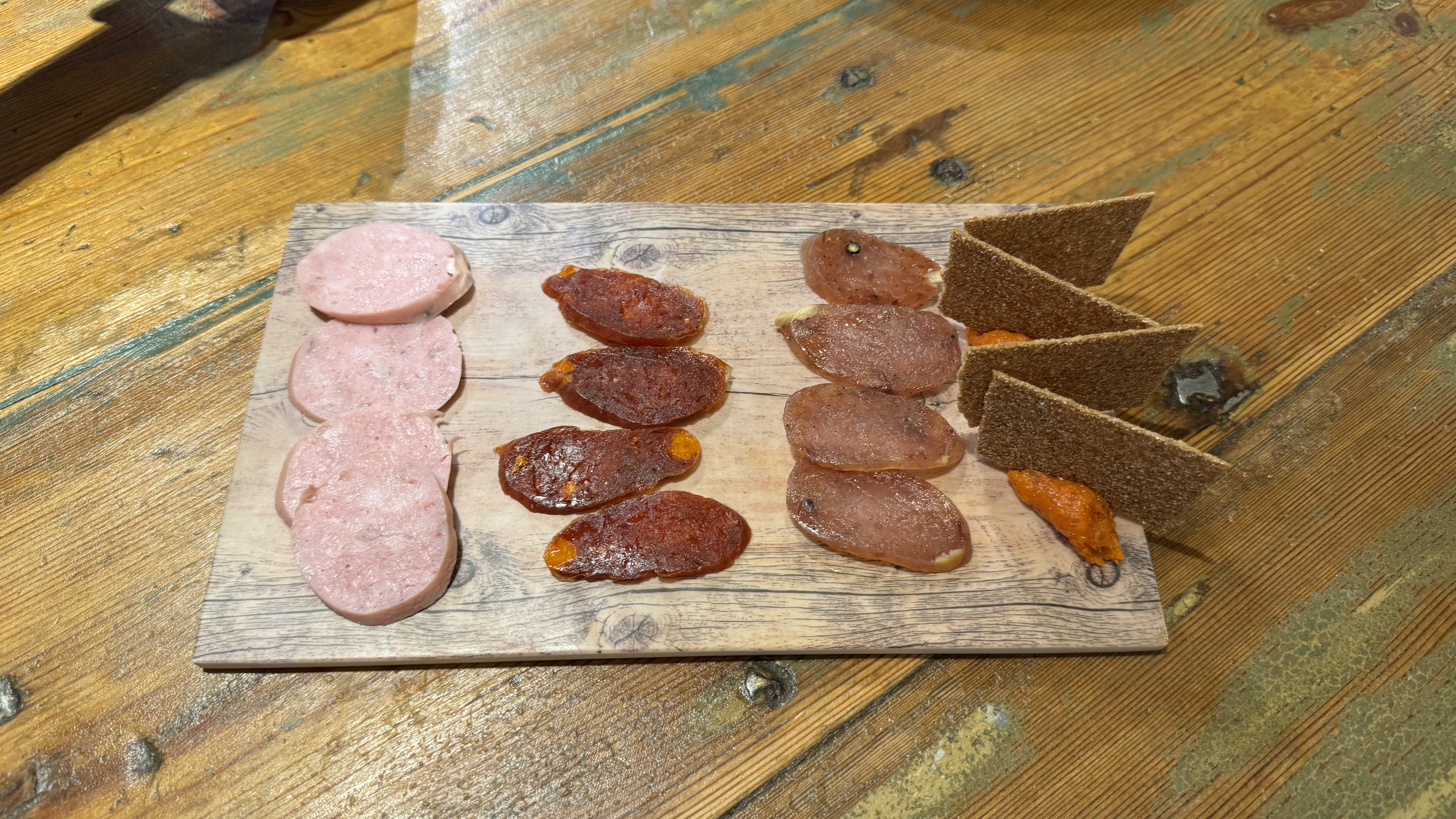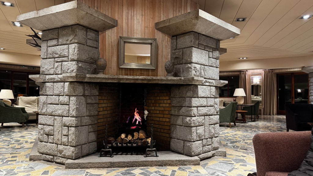 Para completar el día, después de descansar un rato en la habitación, hemos decidido quedarnos a cenar en el Parador, donde pudimos disfrutar de unos platos característicos de esta tierra, y con un excelente servicio. Y antes de dar por finalizado este primer día de esquí, un café y un chupito en el salón, frente a la chimenea, igual que hicimos la noche anterior, después de nuestra llegada.