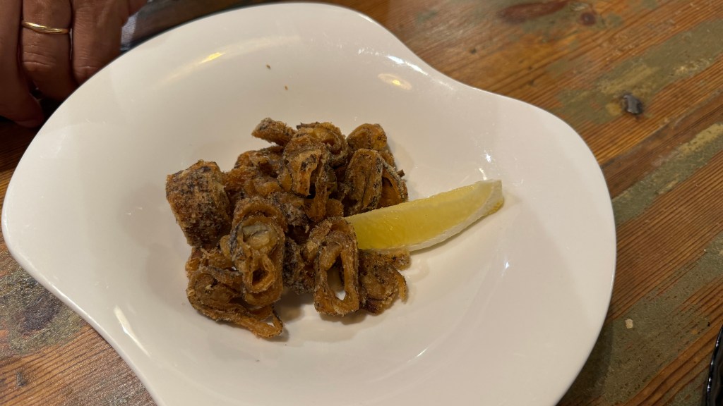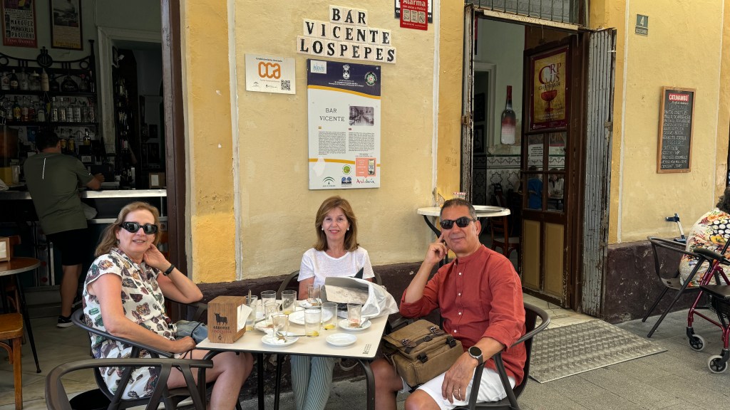 Otra de las cosas a destacar del viaje son las cenas variadas de cada una de las fechas que estuvimos en El Puerto. La primera, en La Pescadería, un sitio muy bien puesto en el centro de la población, donde cenamos francamente bien. Otro lugar menos lujoso, pero bien atendido y con producto típicamente de la zona, fue el bar Gonzalo. Y el mejor de todos, La Taberna del Chef del Mar, de Angel León. Es el chef de Aponiente, un restaurante con dos estrellas Michelin. En esa oportunidad la cena, muy variada en cuanto a los platos que seleccionamos, resultó fantástica, y quedamos con ganas de repetir en un futuro viaje. Elena y Rafa ya lo conocían de visitas anteriores.