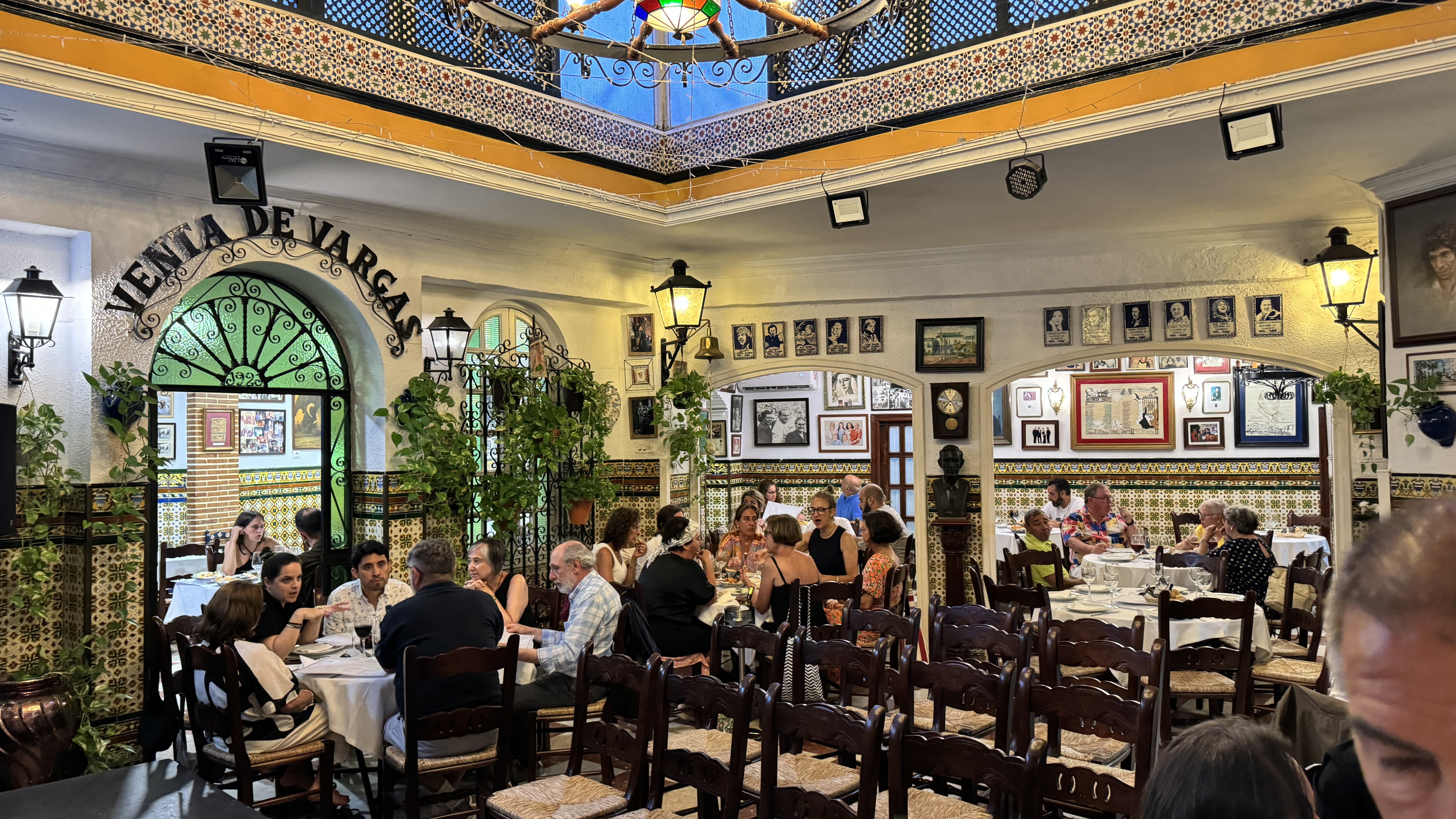 Esa cena, como digo programada para nuestra última jornada completa, era en La Casa de Vargas, en San Fernando. Es un local genuino dentro de lo que es el folklore andaluz, en el que ya estuvimos años atrás, y que tiene como particularidad que en él iniciaron sus carreras personajes tan significados como Camarón de la Isla.
