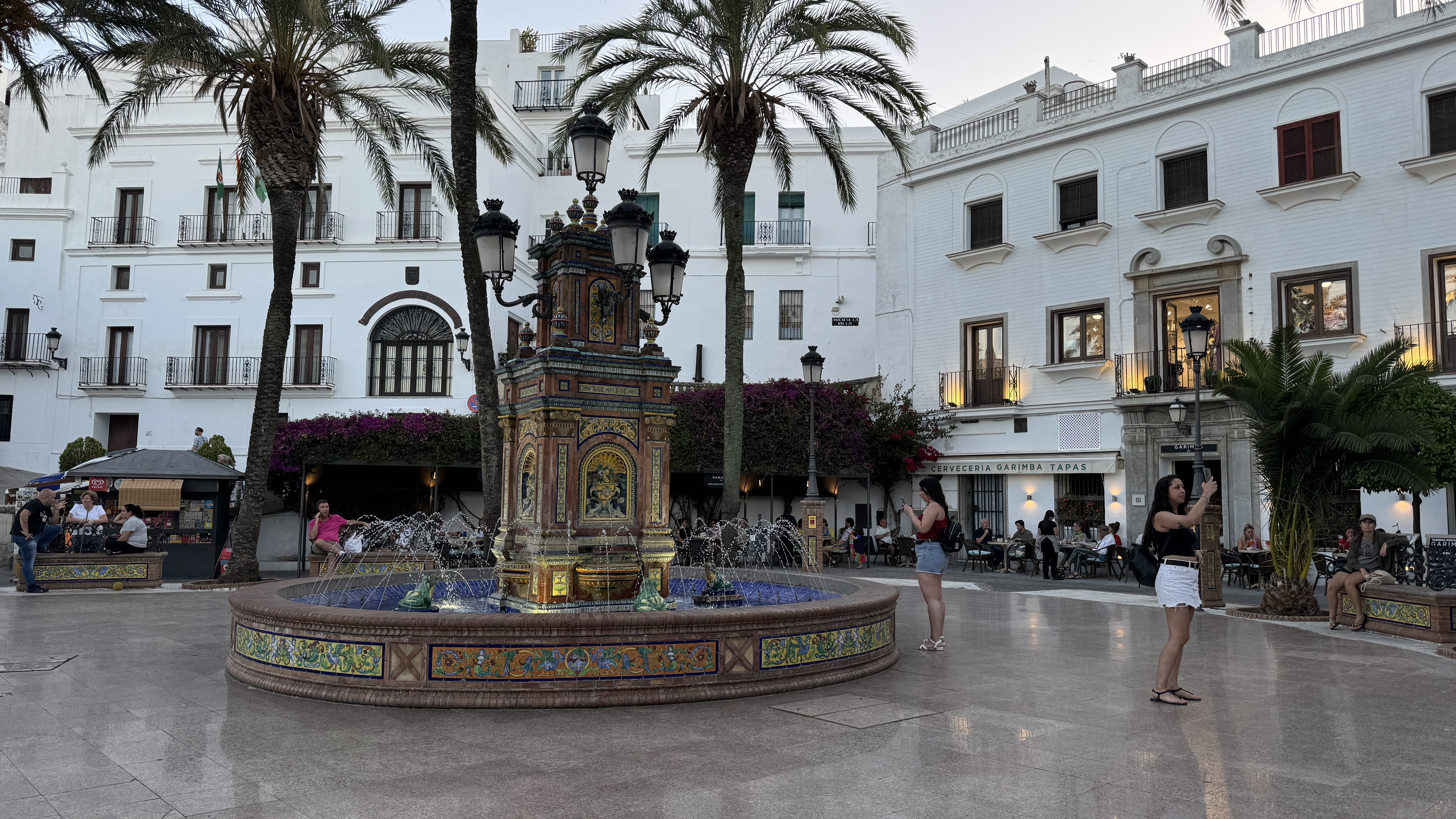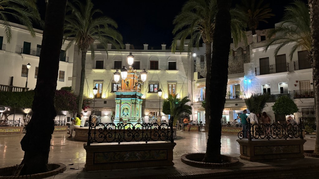 La tercera de las visitas que Elena había concertado antes de viajar era la de Vejer de la Frontera, una población que ya conocíamos de otro viaje anterior y que Rafa y Elena visitaron en diferentes ocasiones. En este caso fue un recorrido vespertino, con mucha más concurrencia que en las dos visitas de Cadiz y Setenil. Aunque no estuvo mal, desde mi punto de vista resultó menos atractiva que las otras dos. Al final, el guía nos obsequió con una mini-cata de un Pedro Ximenez y unas rodajas de salchichón.