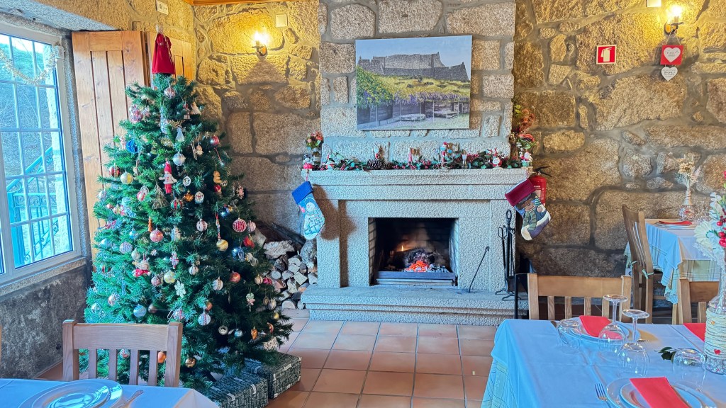 Comimos en el restaurante Casa do Destro, ubicado justo a los pies del Castillo de Lindoso y junto al conjunto de hórreos o «espinheiros» como los denominan los portugueses. Este lugar ya algunos de los componentes del grupo (Armando, Pila y yo mismo) lo conocíamos de un viaje que hicimos hace 17 años con otro grupo de personas. La comida, sin ser una maravilla, estuvo aceptable, a base de platos característicos de la cocina local.
