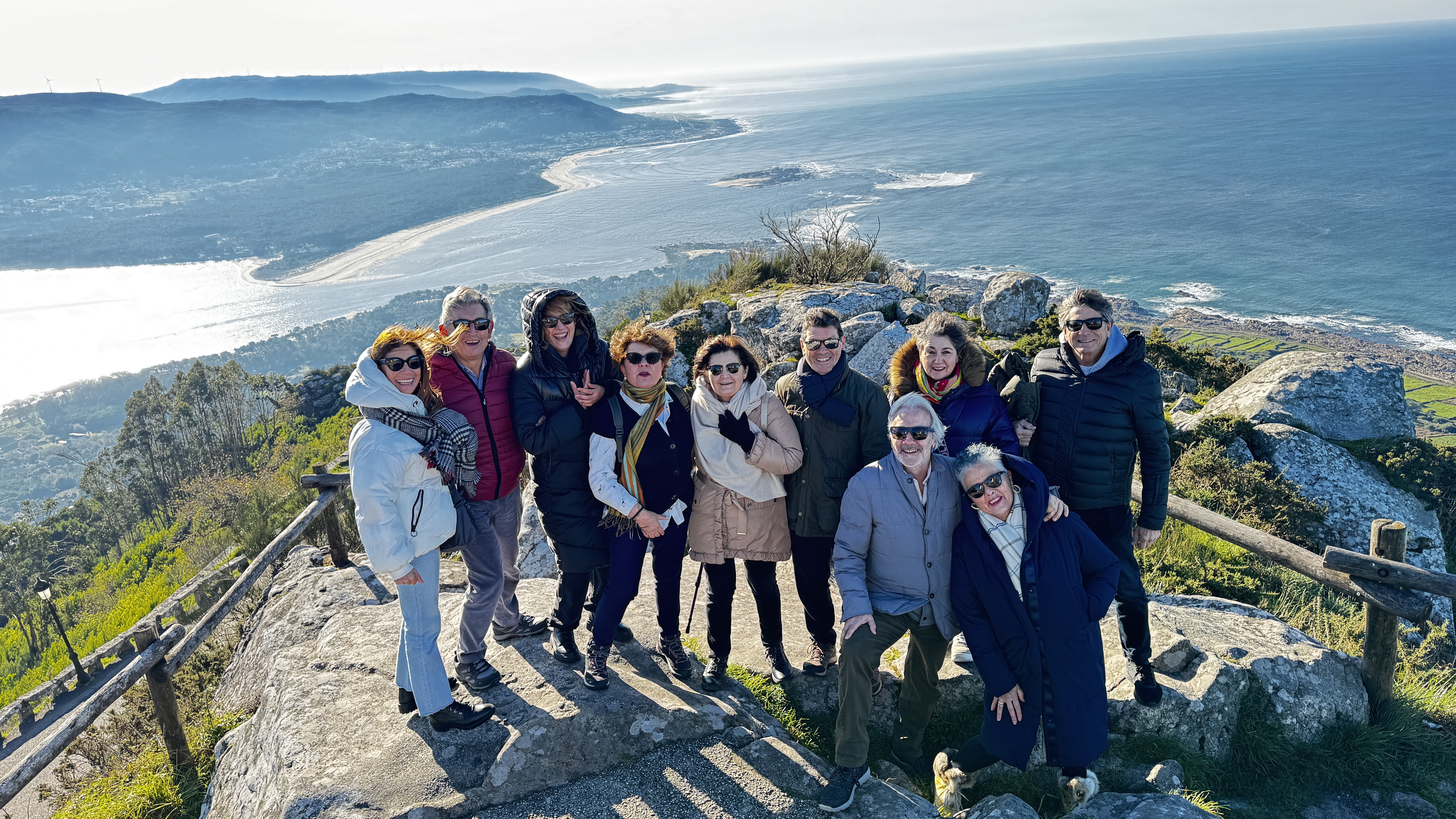 Nuestra primera parada tras abandonar la casa fue el mirador de Santa Tecla, donde pudimos gozar del espléndido día para dominar la vista de la desembocadura del Miño, la costa portuguesa y allí, sobre el terreno, ver el castro que está muy bien rehabilitado, y que la mayor parte de los asistentes ya conocía por visitas anteriores.
