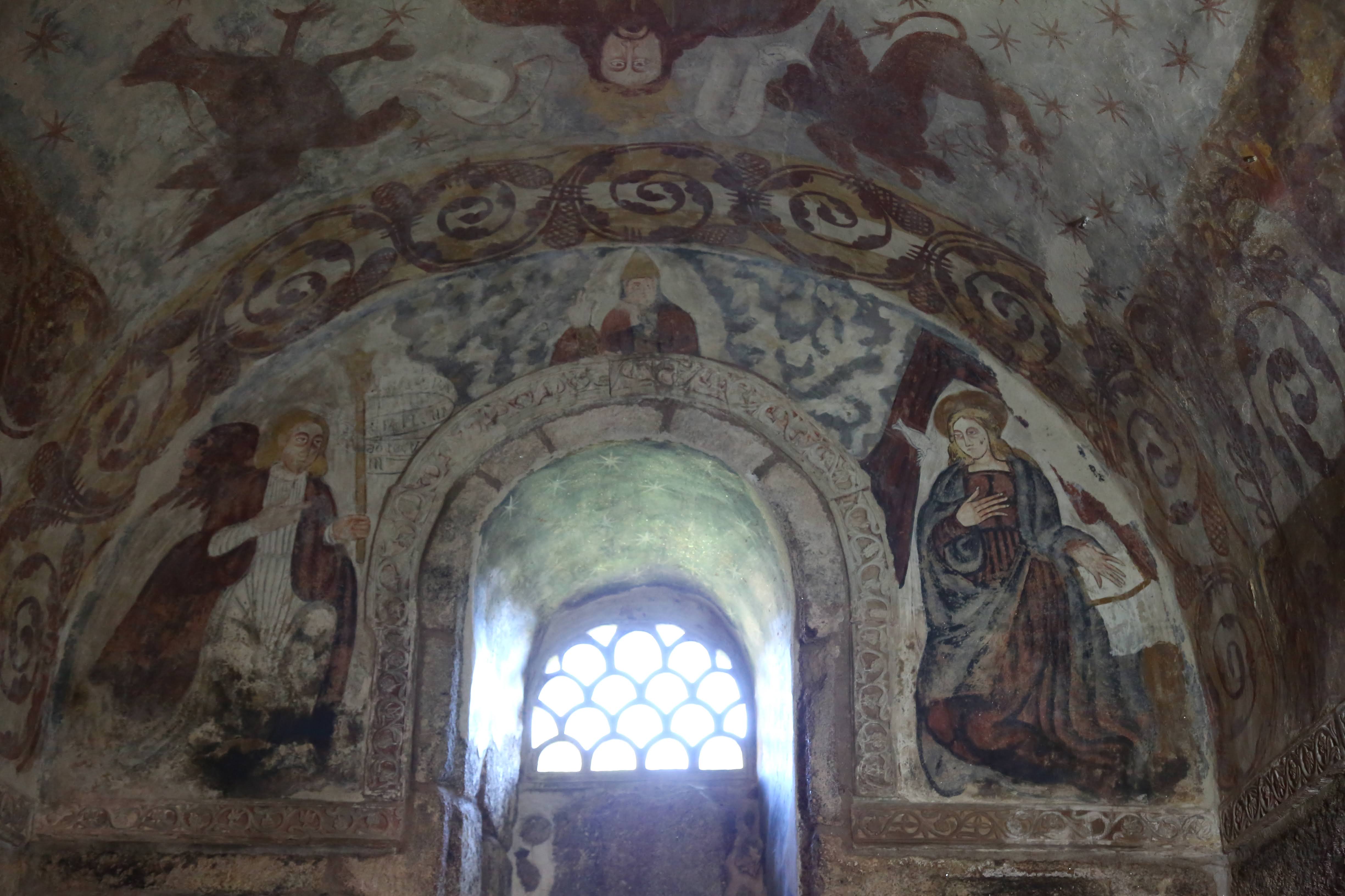 La encargada de mostrarnos la iglesia tuvo la amabilidad de atendernos a las 2 de la tarde, y en menos de media hora nos dio amplias explicaciones sobre el origen de las pinturas, las columnas situradas junto al altar, sus capiteles, etc. Aunque algunos ya habíamos realizado al visita en otras ocasiones, fue una buena ocasión de descubrir esa pequeña joya para quienes no habían estado nunca allí y de recordarlo para quienes ya la habíamos descubierto anteriormente.