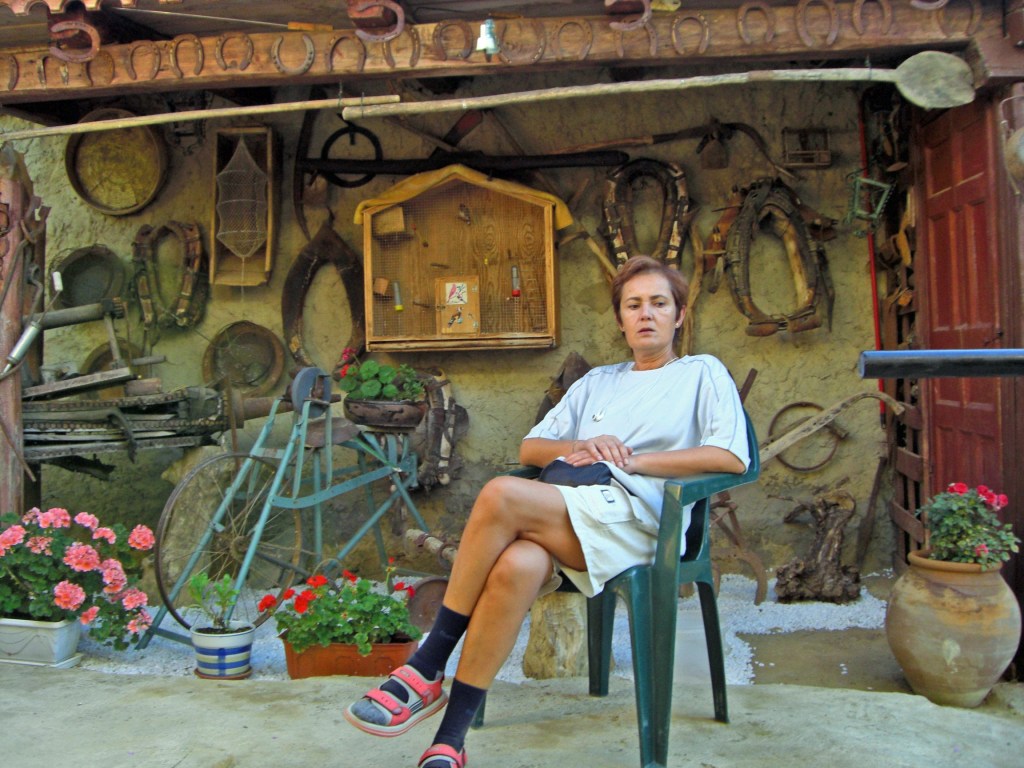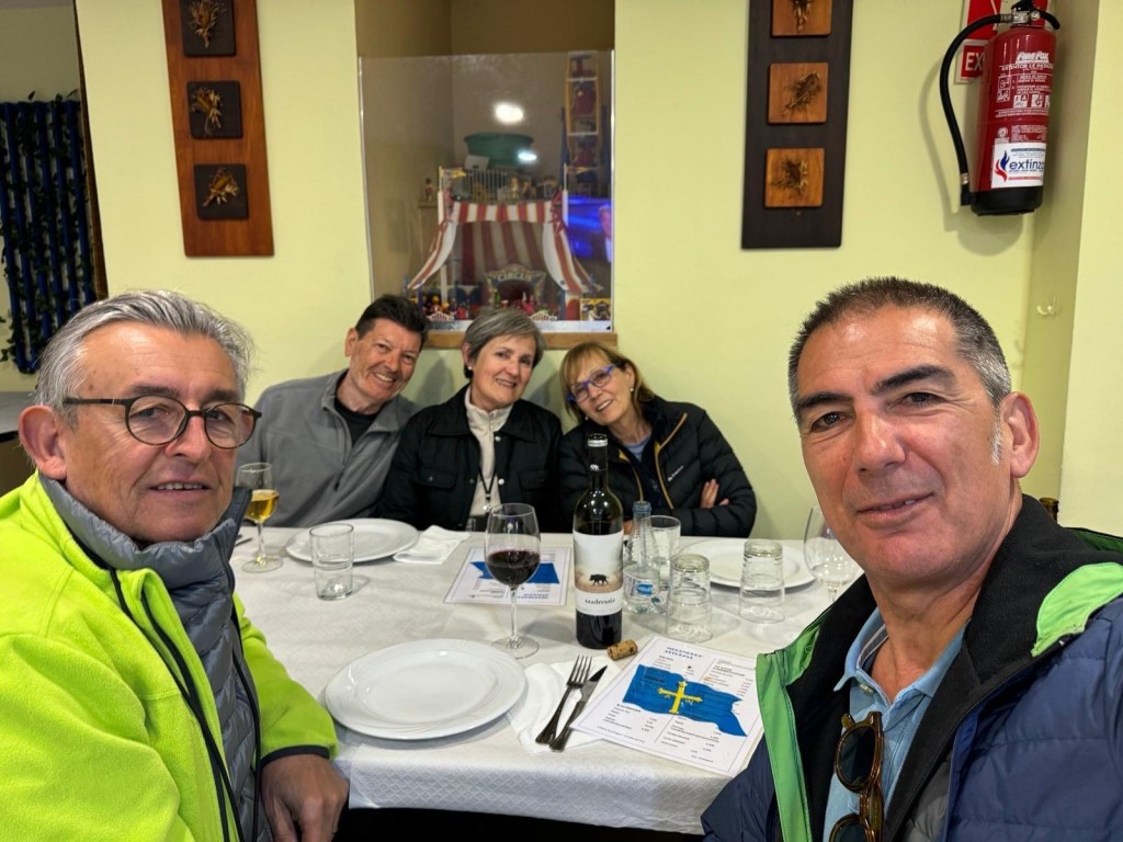 Caminando hacia la salida del pueblo, Chus, que iba mirando hacia las cuevas-bodega que son allí abundantes, tropezó con una baldosa deficiente y se fue de morros al suelo. Suerte que la cosa quedó solo en el susto y un ligero dolor de mandíbula.