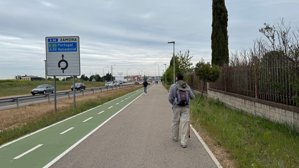 Esta penúltima etapa, que parecía ser suave y tranquila, empezó con un par de pequeños incidentes. Por cierto, que la pareja de alemanes que viene coincidiendo con nosotros nos pidió hoy si nuestro mochilero podía llevar también la de su pareja, así que lo propusimos a Caminofacil y lo aceptaron.